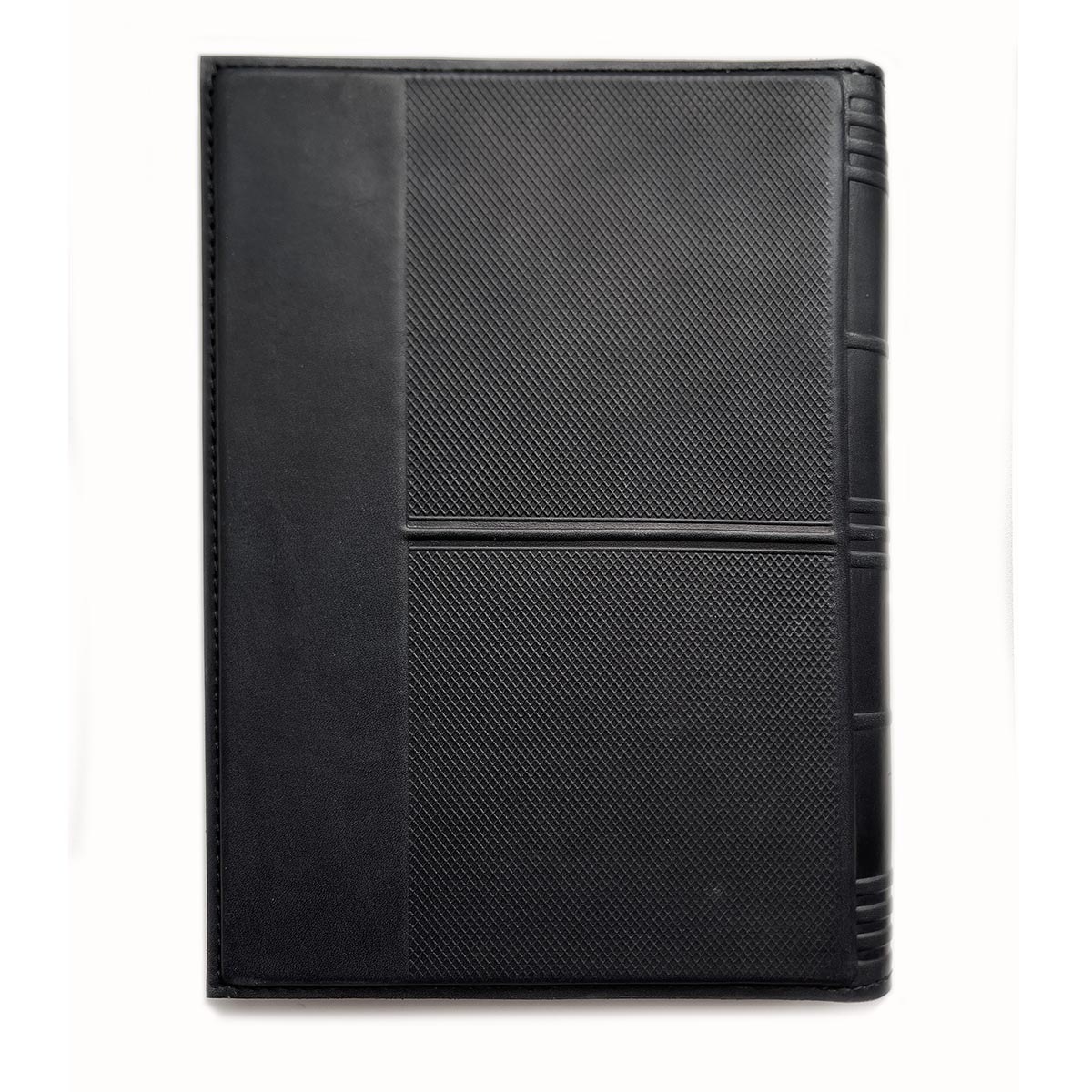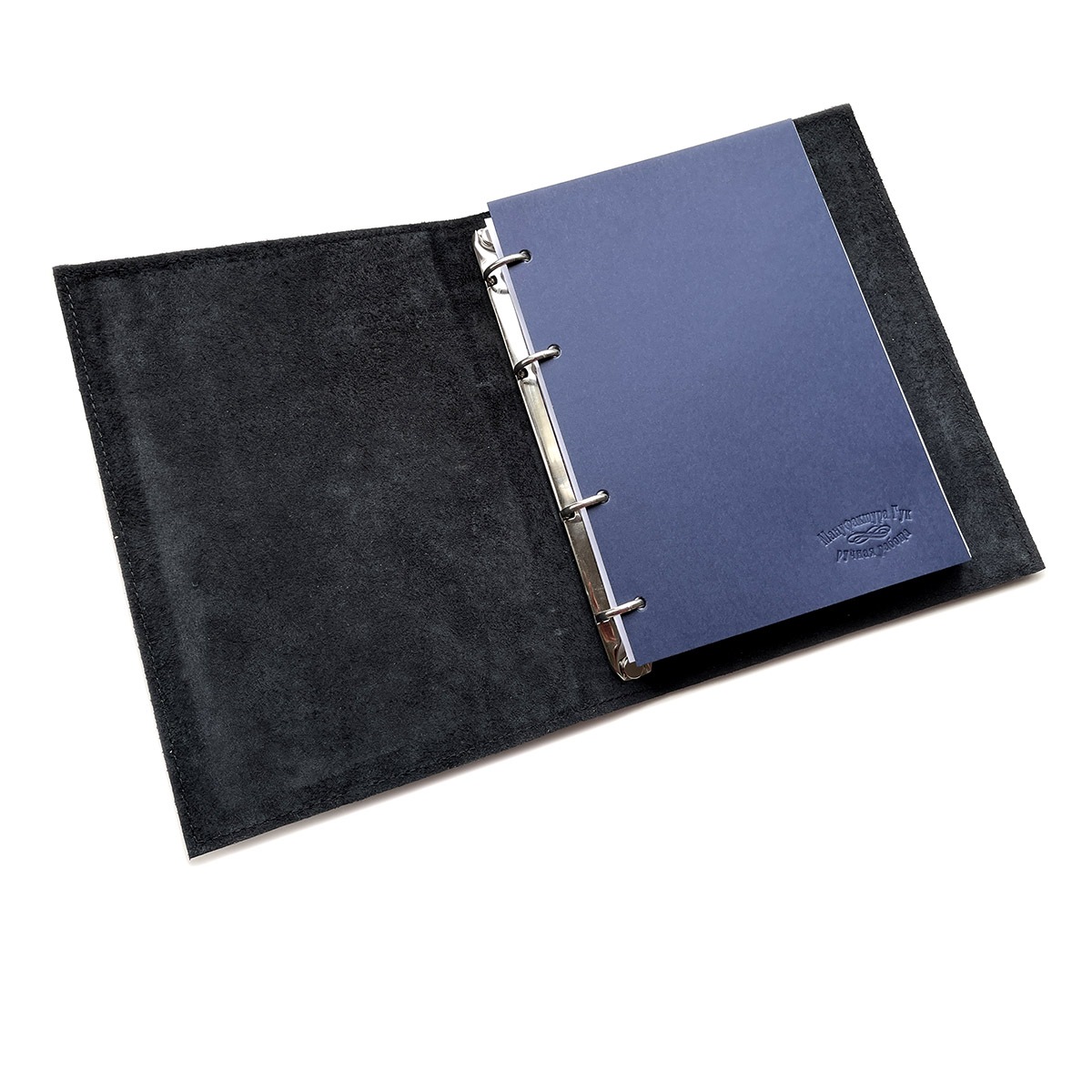 Блок для записи А5 в кожаной обложке с кольцевым механизмом.