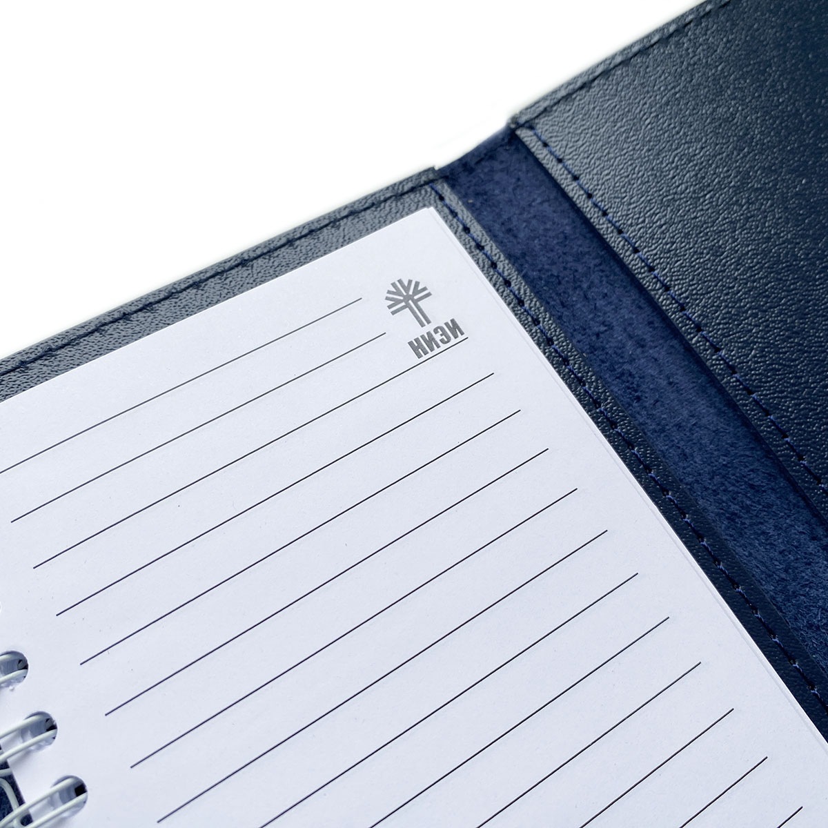 Блокнот в обложке из натуральной кожи. Данное изделие изготавливается по индивидуальным размерам и полностью по индивидуальному дизайну. Блок с листами собирается на пружину. Возможен индивидуальный дизайн блока с вашими размерами и с вашим дизайном. Обложка так же может быть изготовлена по индивидуальному дизайну и с вашим логотипом. Данные изделия изготавливаем тиражем от 20 штук под заказ.