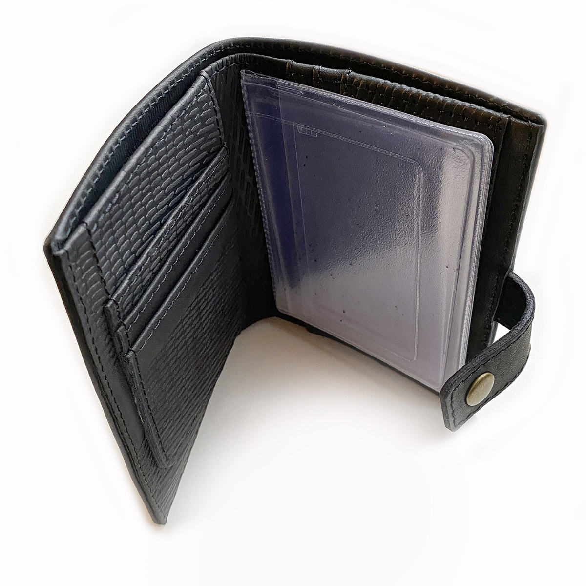 Бумажник водителя "CASH MONEY BLACK". Для хранения купюр предусмотрен один вертикальный карман. Слева боковой карман, сшитый точно по высоте паспорта, над ним два небольших кармана для хранения кредитных, визитных, либо дисконтных карточек. Для автодоументов прилагается пластиковый вкладыш, в котором предусмотрены ниши для водительского удостоверения, техпаспорта, талона, сертификата, и отдельная ниша для страховки.