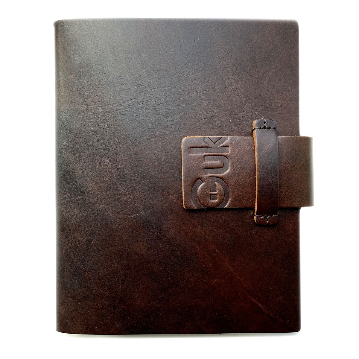 Кожаный ежедневник "HARD" с креплениями листов на кольцах от бренда Гук с тиснением логотипа. Изготовлен из натуральной кожи. Сменный тетрадный блок, когда вы испишете последнюю страничку, вы сможете приобрести блок в любом магазине канцтоваров и заменить на новый, а обложка с кольцевым механизмом останется. Изготовление под заказ с логотипом возможно от 5 одинаковых единиц.