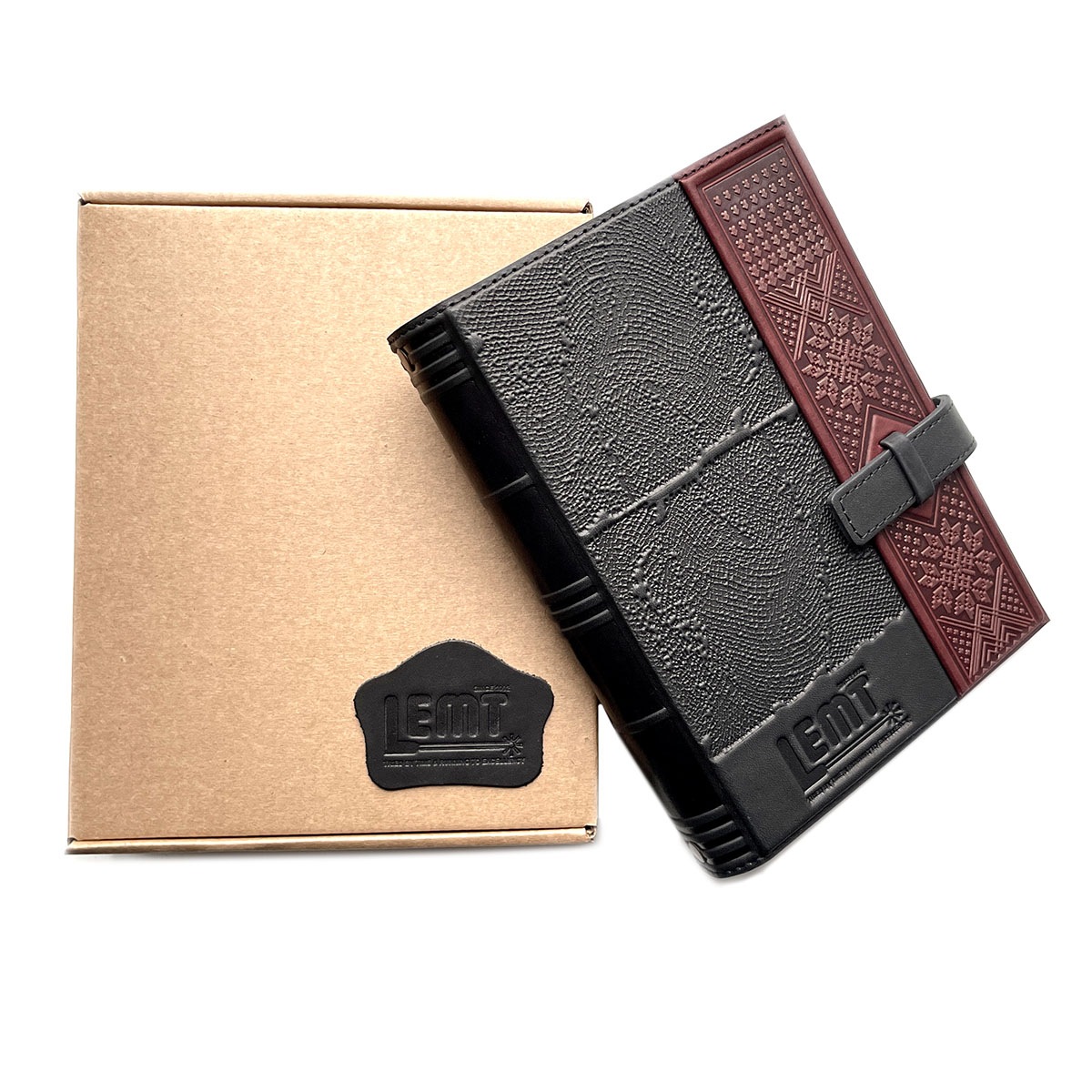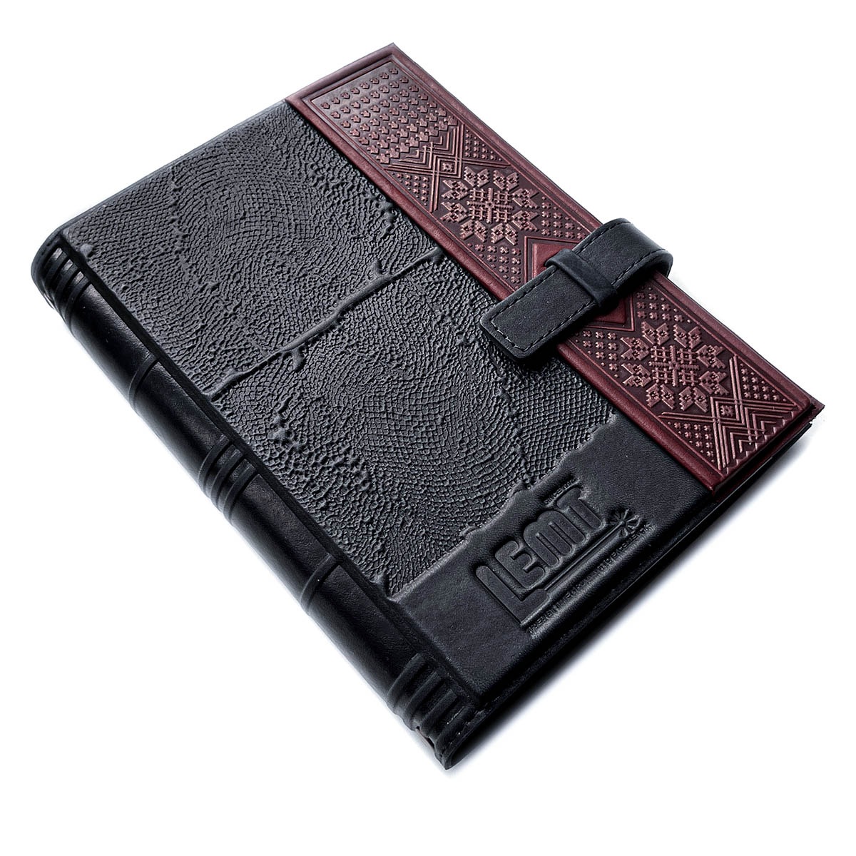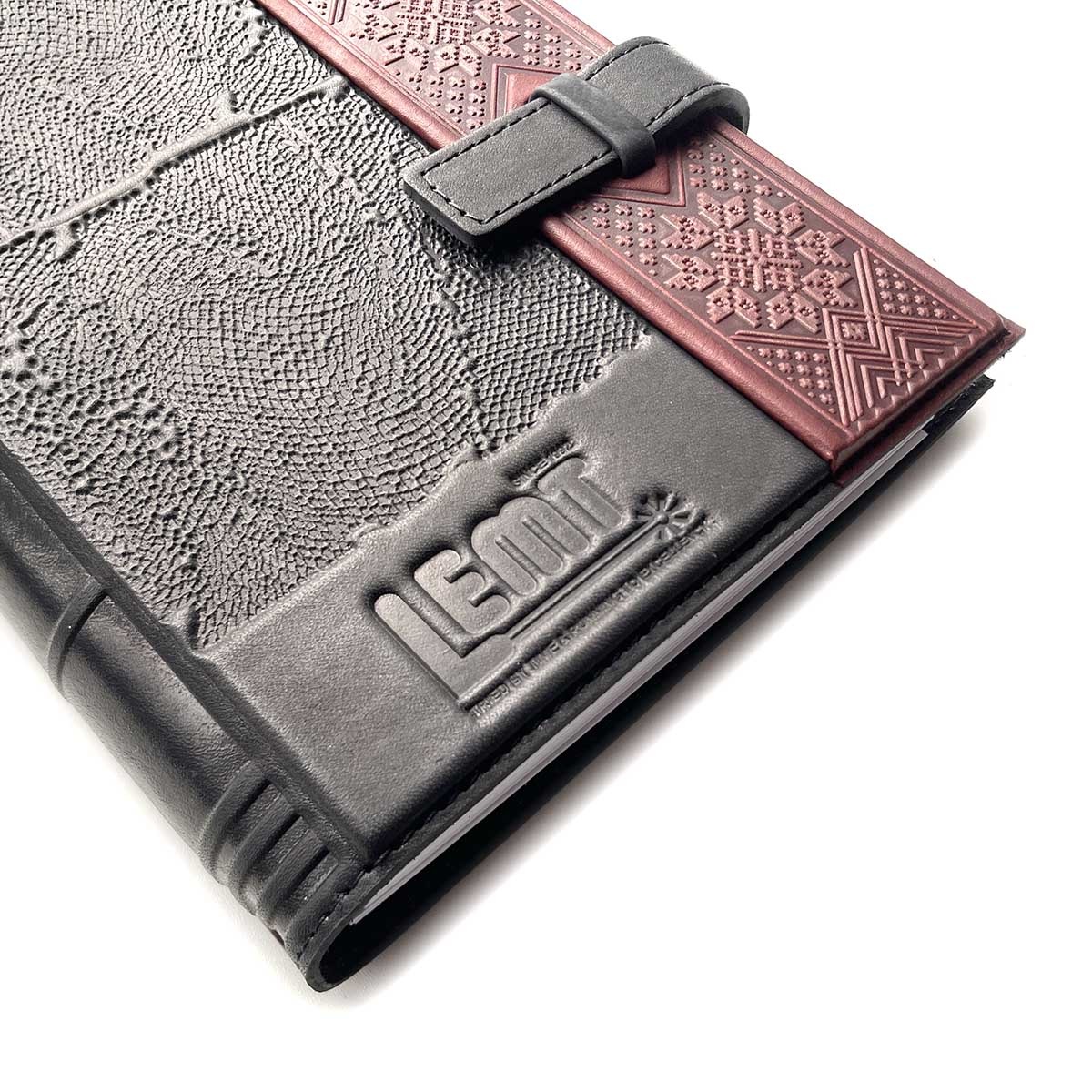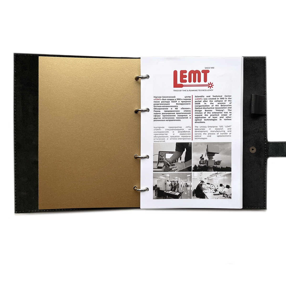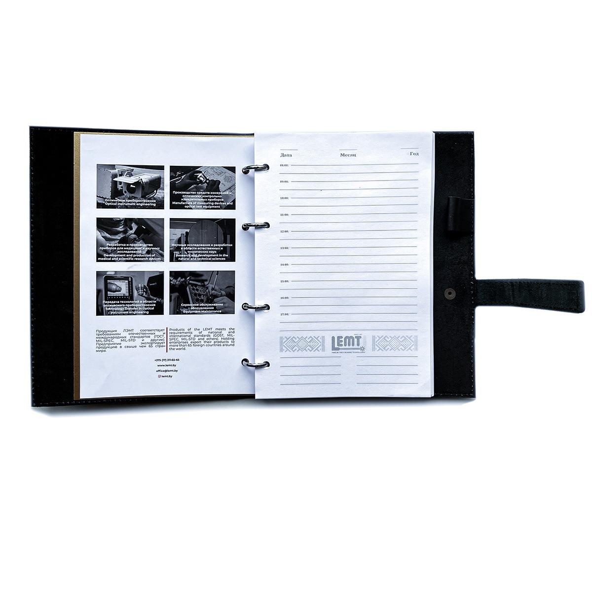 Кожаный ежедневник с креплениями листов на кольцах от бренда Гук с тиснением логотипа на обложке и на листах. Изготовлен из натуральной кожи. Сменный блок, напечатаный по индивидуальному макету с логотипом компании на каждой странице. Когда вы испишете последнюю страничку, вы сможете приобрести блок в любом магазине канцтоваров и заменить на новый, а обложка с кольцевым механизмом останется. Изготовление под заказ с логотипом на обложке возможно от 5-ти одинаковых единиц. Изготовление с печатью индивидуального блока от 20-ти одинаковых единиц.