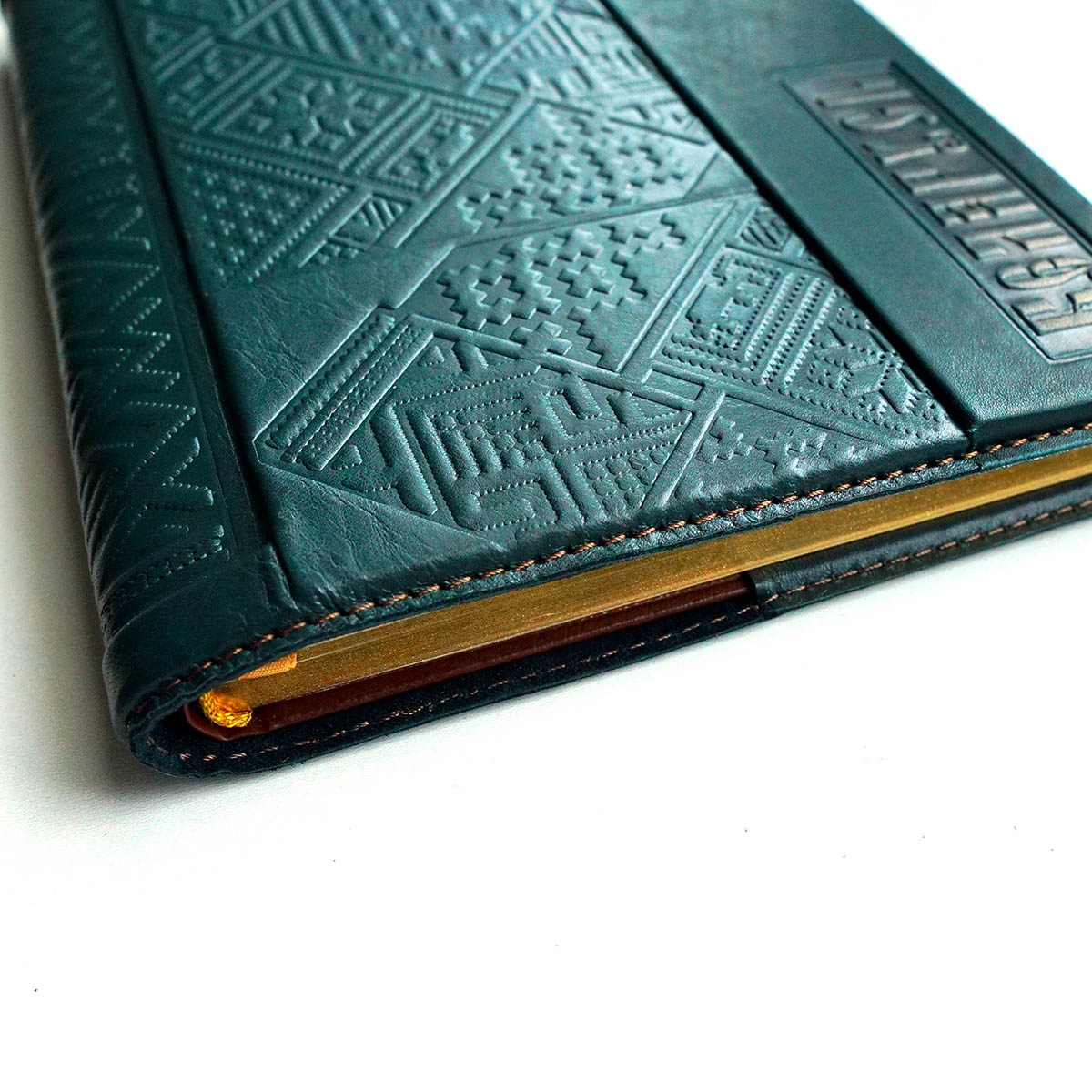 Ежедневник формата А5 в обложке из натуральной кожи "БЕЛАРУСЬ-3" с оригинальным тиснением. Сменный блок стандартного размера А5, изготовлен из лощеной бумаги высокого качества. На каждой странице в виде водяных знаков сделаны изображения памятников мировой архитектуры. Срез блока с трех сторон фольгирован "под золото". Обложка выполнена из высококачественной натуральной телячей кожи.