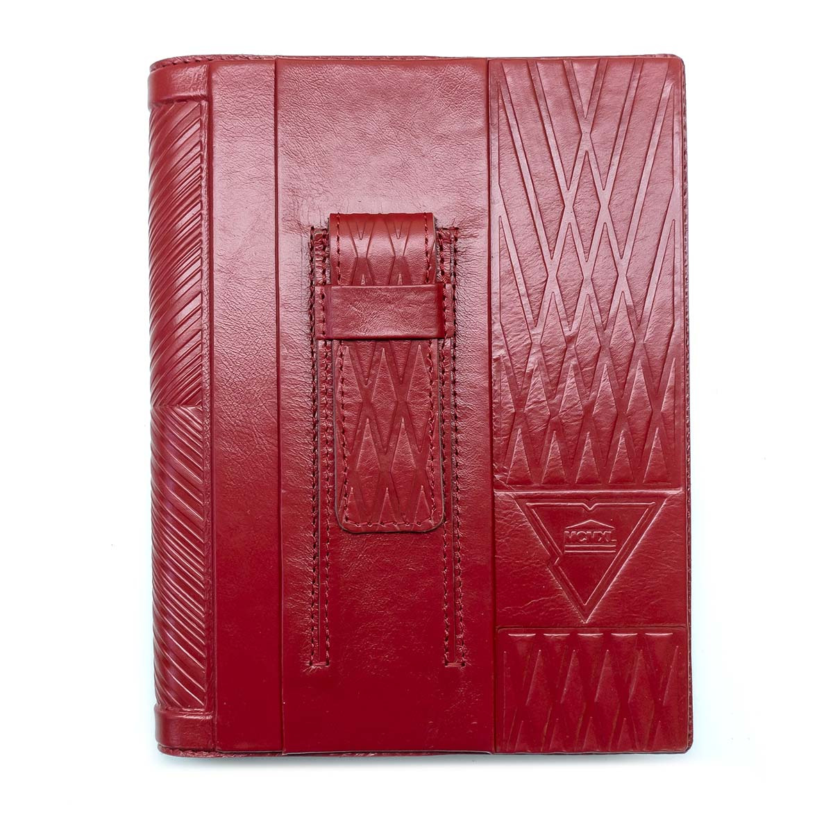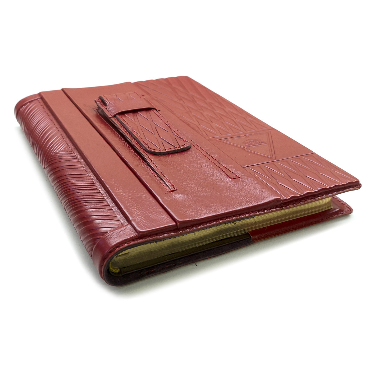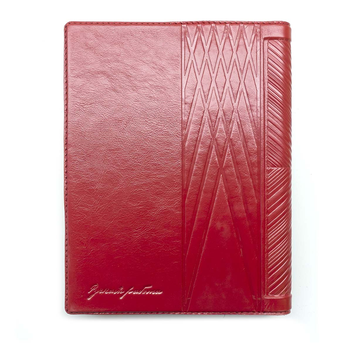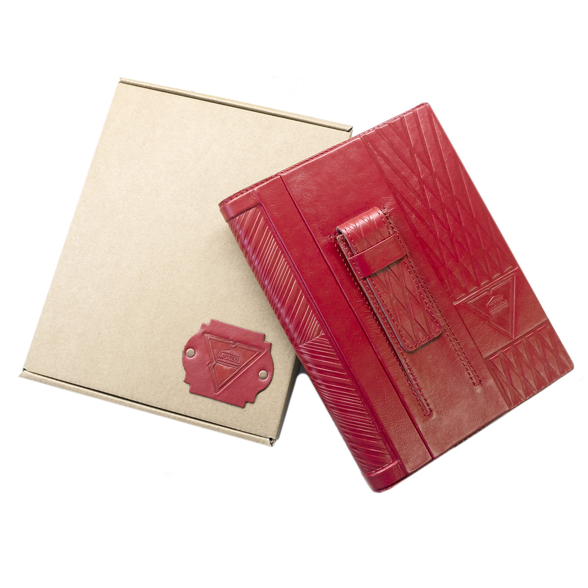 Пример изготовления ежедневника с нанесением логотипа. Ежедневник формата А5 в обложке из натуральной кожи с оригинальным тиснением.Сменный блок стандартного размера А5, изготовлен из лощеной бумаги высокого качества. На каждой странице в виде водяных знаков сделаны изображения памятников архитектуры. На выбор мы предлагаем один из двух вариантов ежедневника: "Шедевры мирового зодчества" либо "Архитектура Беларуси". Оба варианта ежедневника недатированы, надписи на страницах дублируются на нескольких языках. Срез блока с трех сторон фольгирован "под золото". Обложка выполнена из высококачественной натуральной телячей кожи. Ежедневник упакован в картонную упаковку, на которой приделана кожаная бирка с логотипом заказчика. Ежедневники в кожаной обложке с логотипом изготавливаются под заказ от 10 единиц.