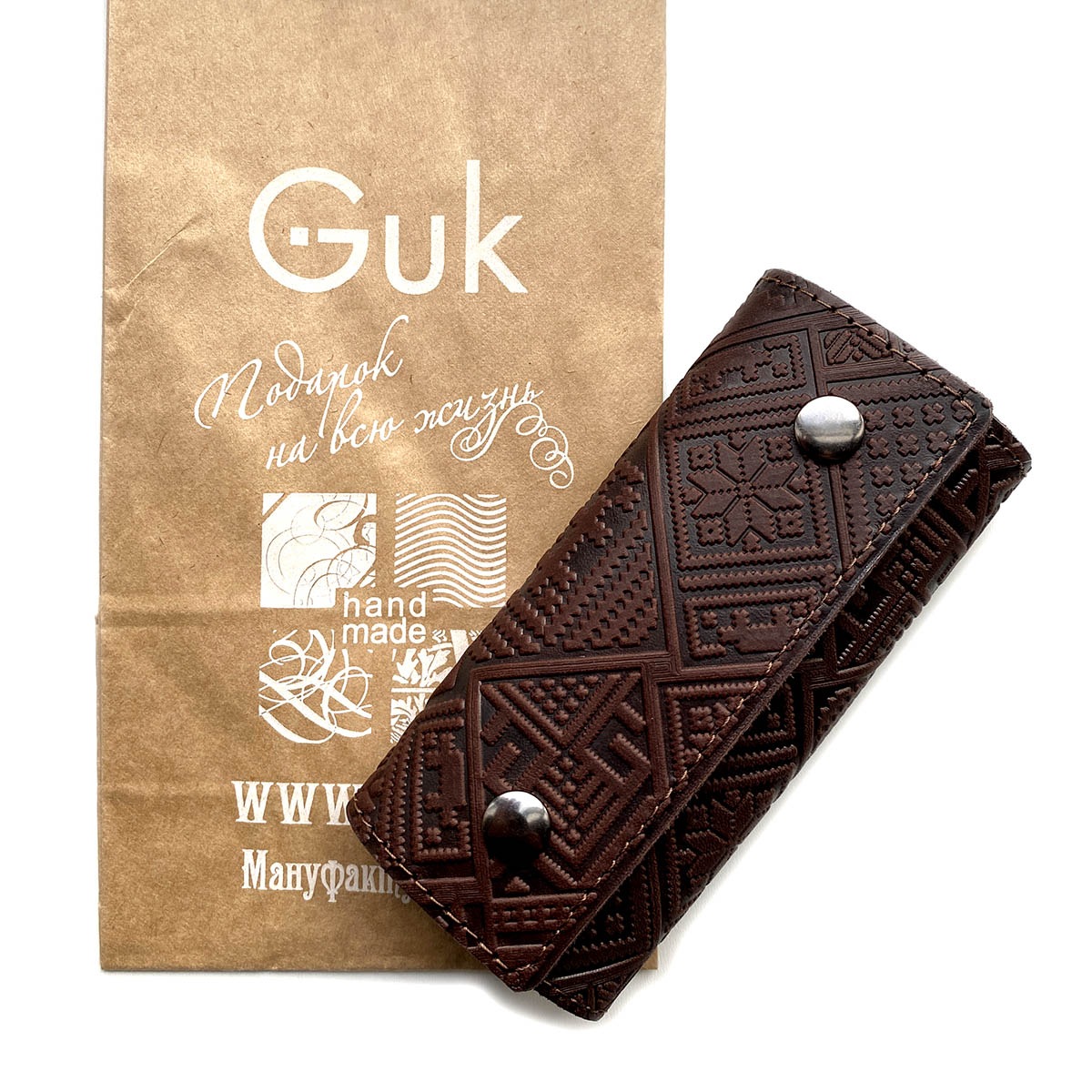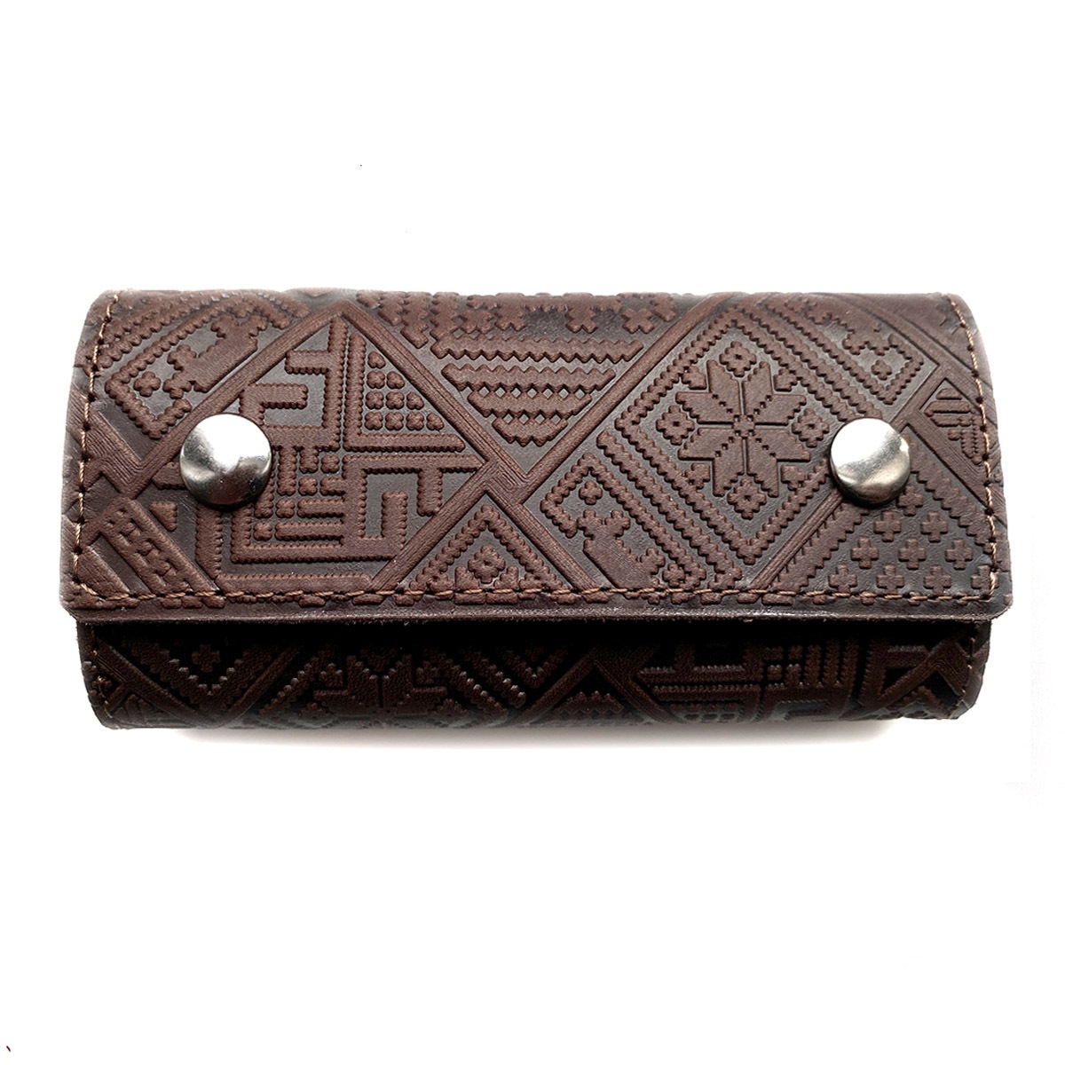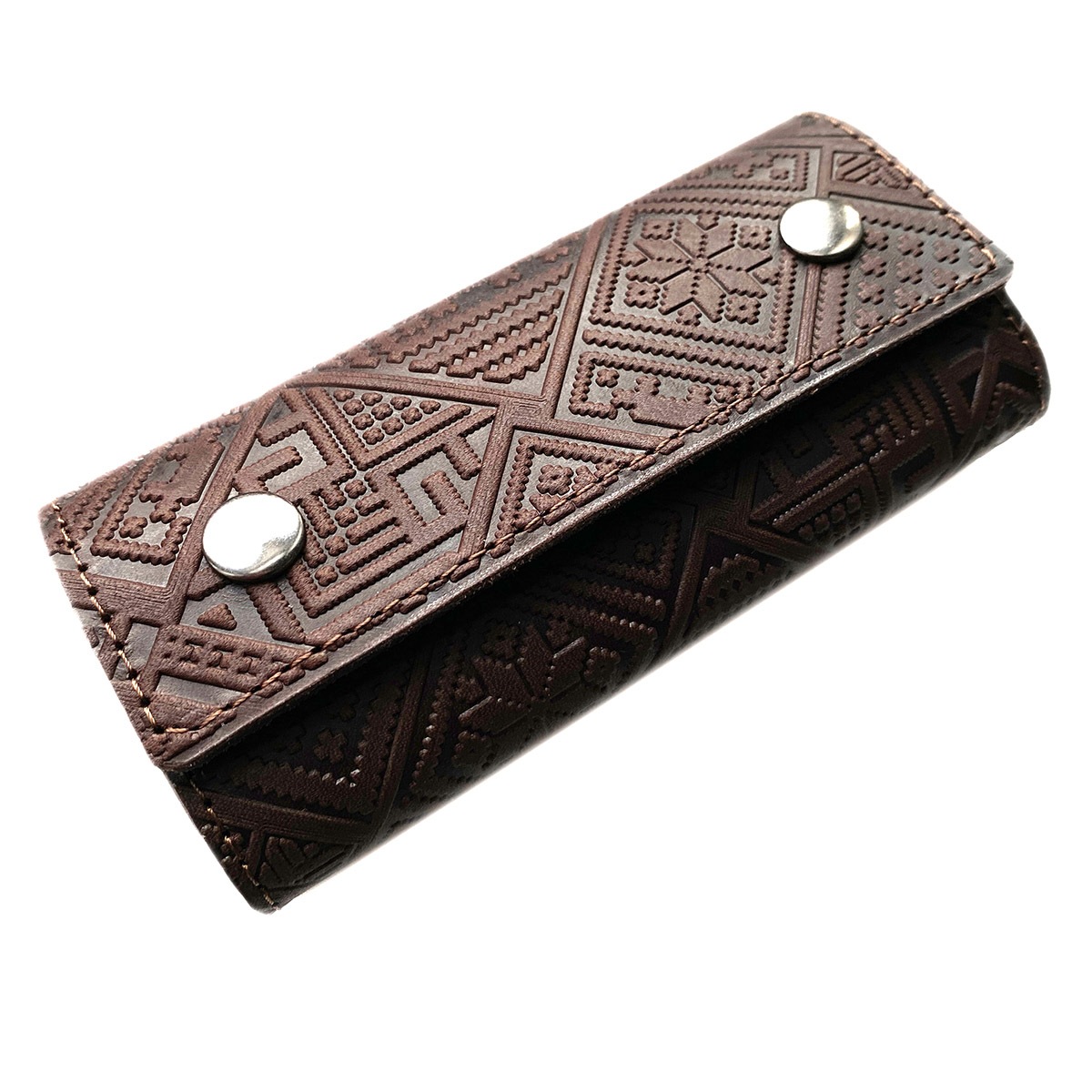 Ключница из высококачественной натуральной кожи. Ключница закрывается на две кнопки. Скручивается в трубочку, Имеет жесткую основу. Ключи крепятся на карабины.