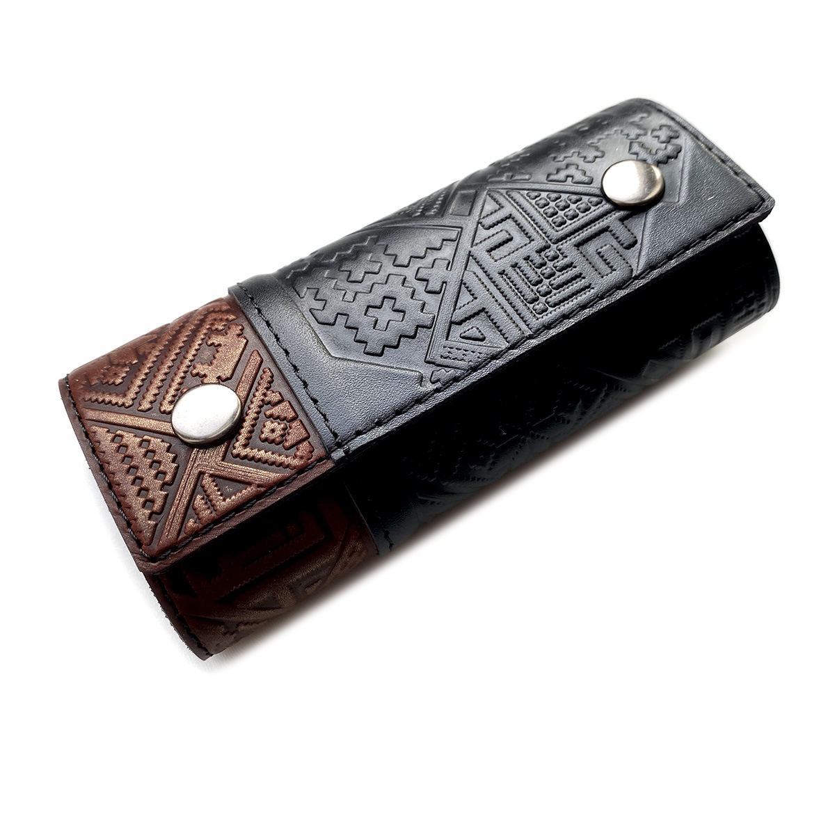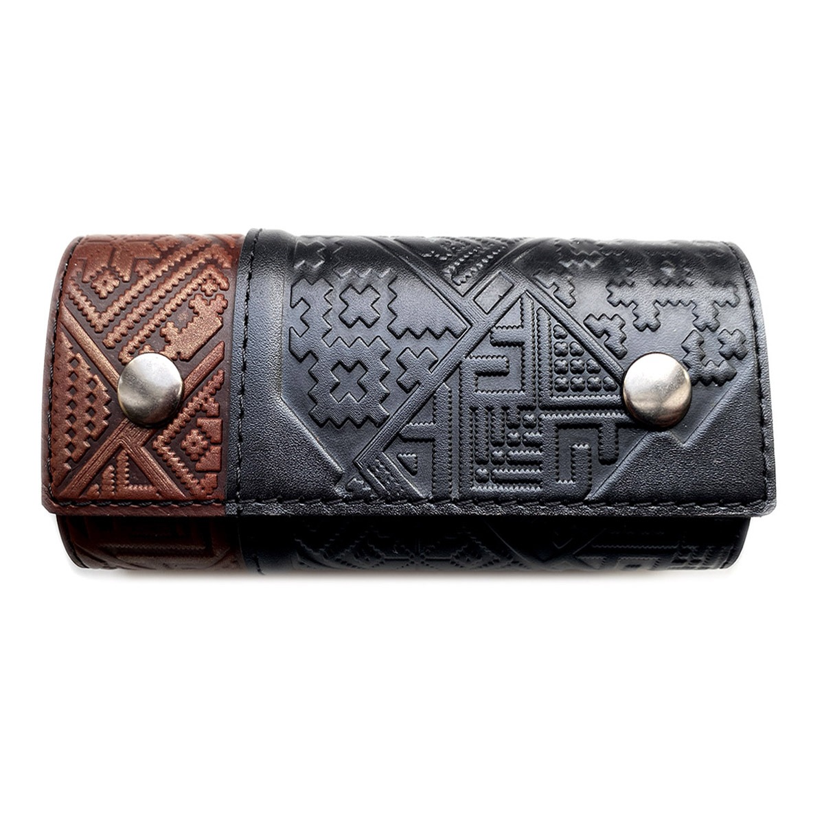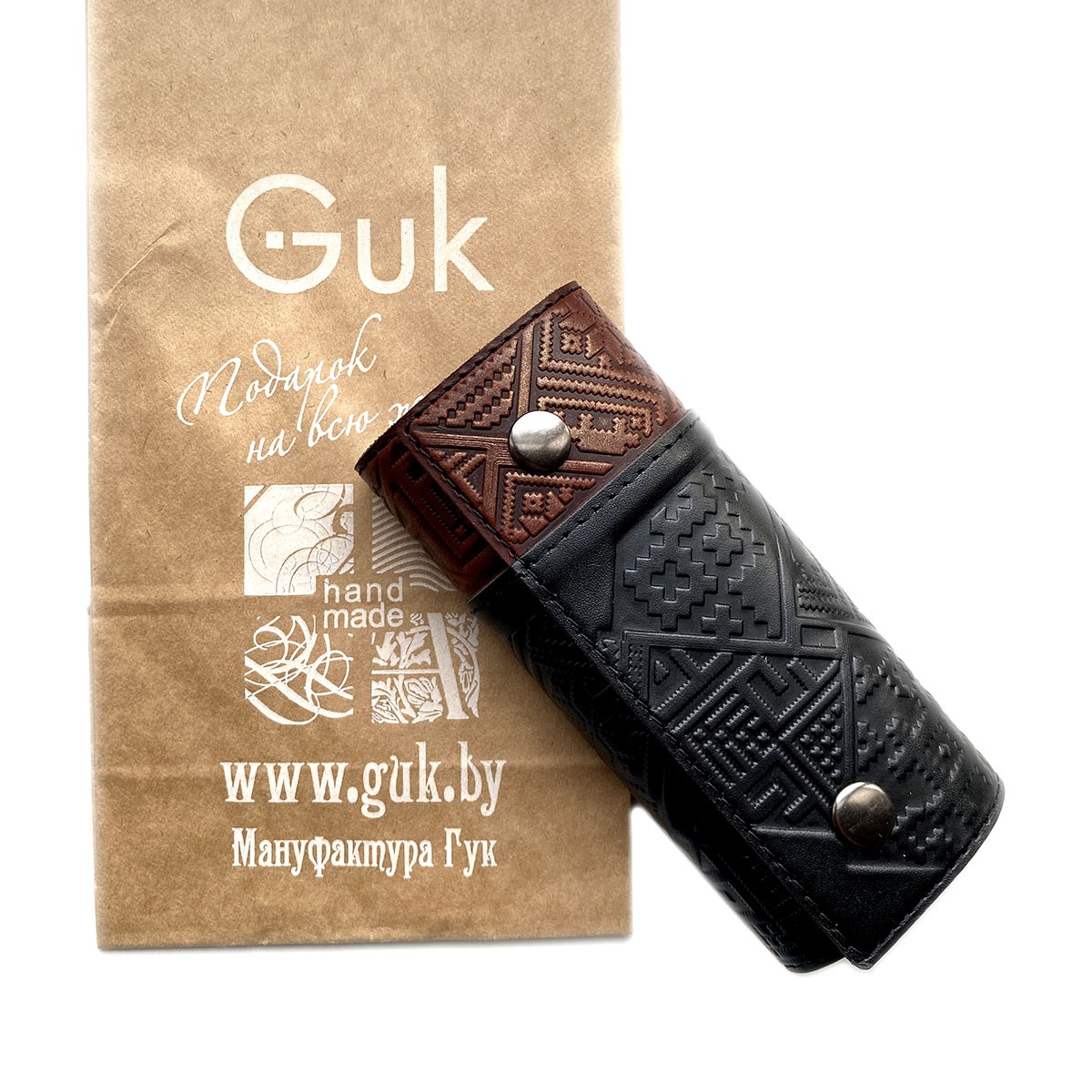 Ключница из высококачественной натуральной кожи. Ключница закрывается на две кнопки. Скручивается в трубочку, Имеет жесткую основу. Ключи крепятся на карабины.