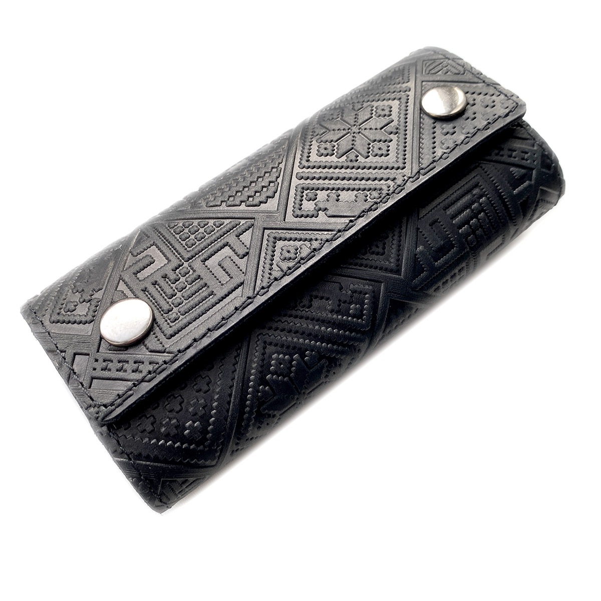 Ключница из высококачественной натуральной кожи. Ключница закрывается на две кнопки. Скручивается в трубочку, Имеет жесткую основу. Ключи крепятся на карабины.