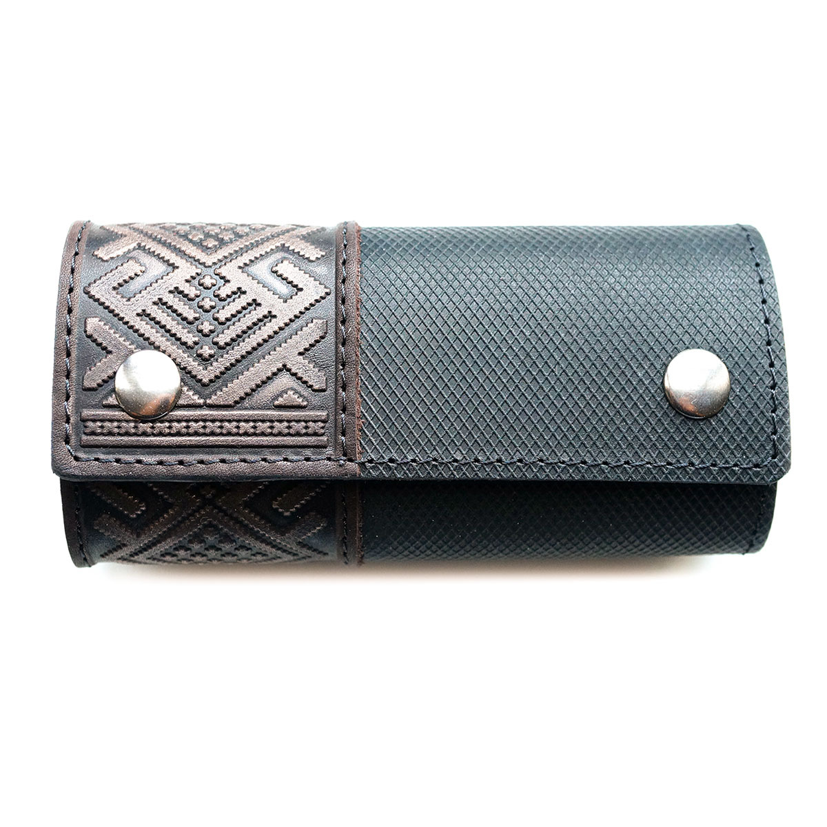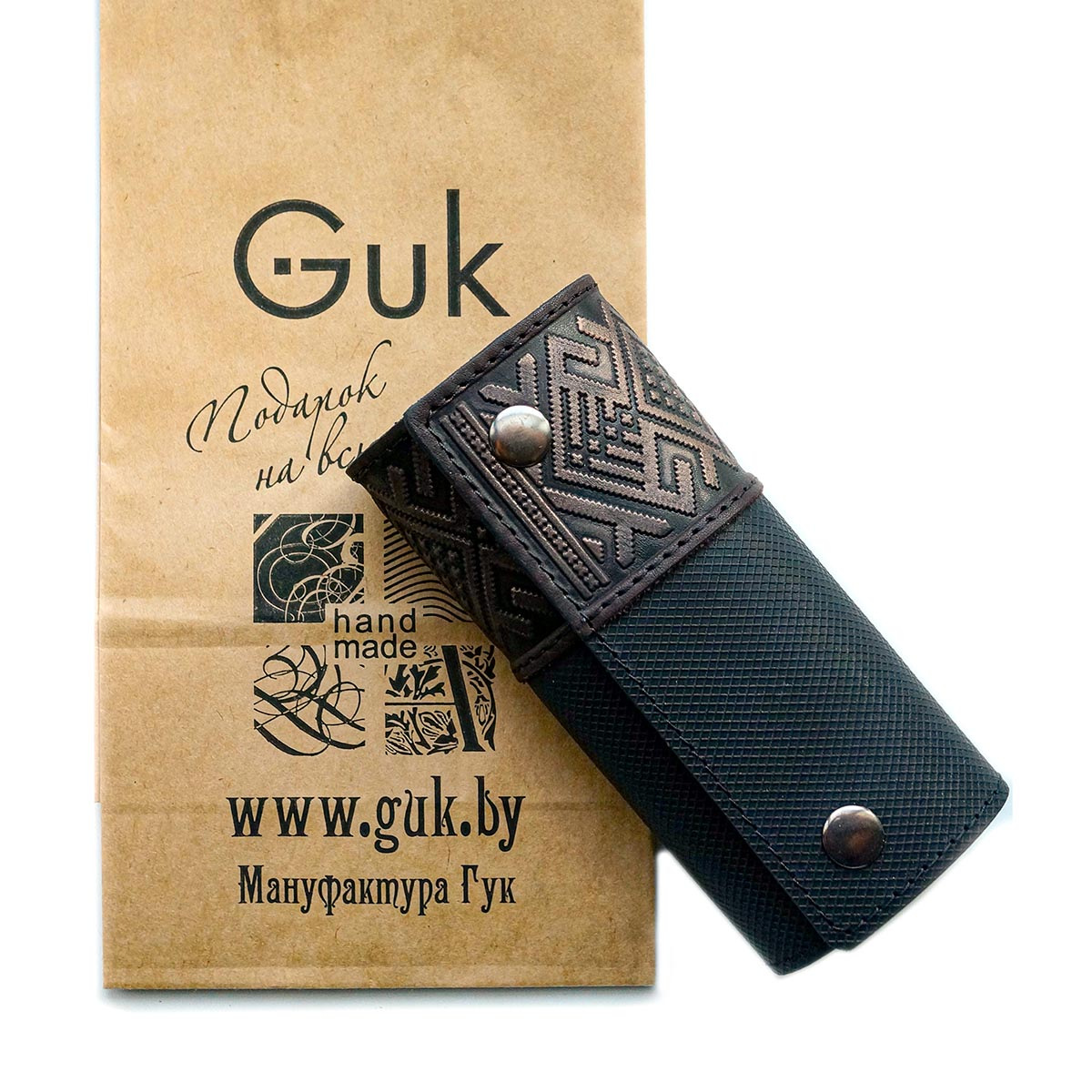 Ключница из высококачественной натуральной кожи. Ключница закрывается на две кнопки. Скручивается в трубочку, Имеет жесткую основу. Ключи крепятся на кольцо.