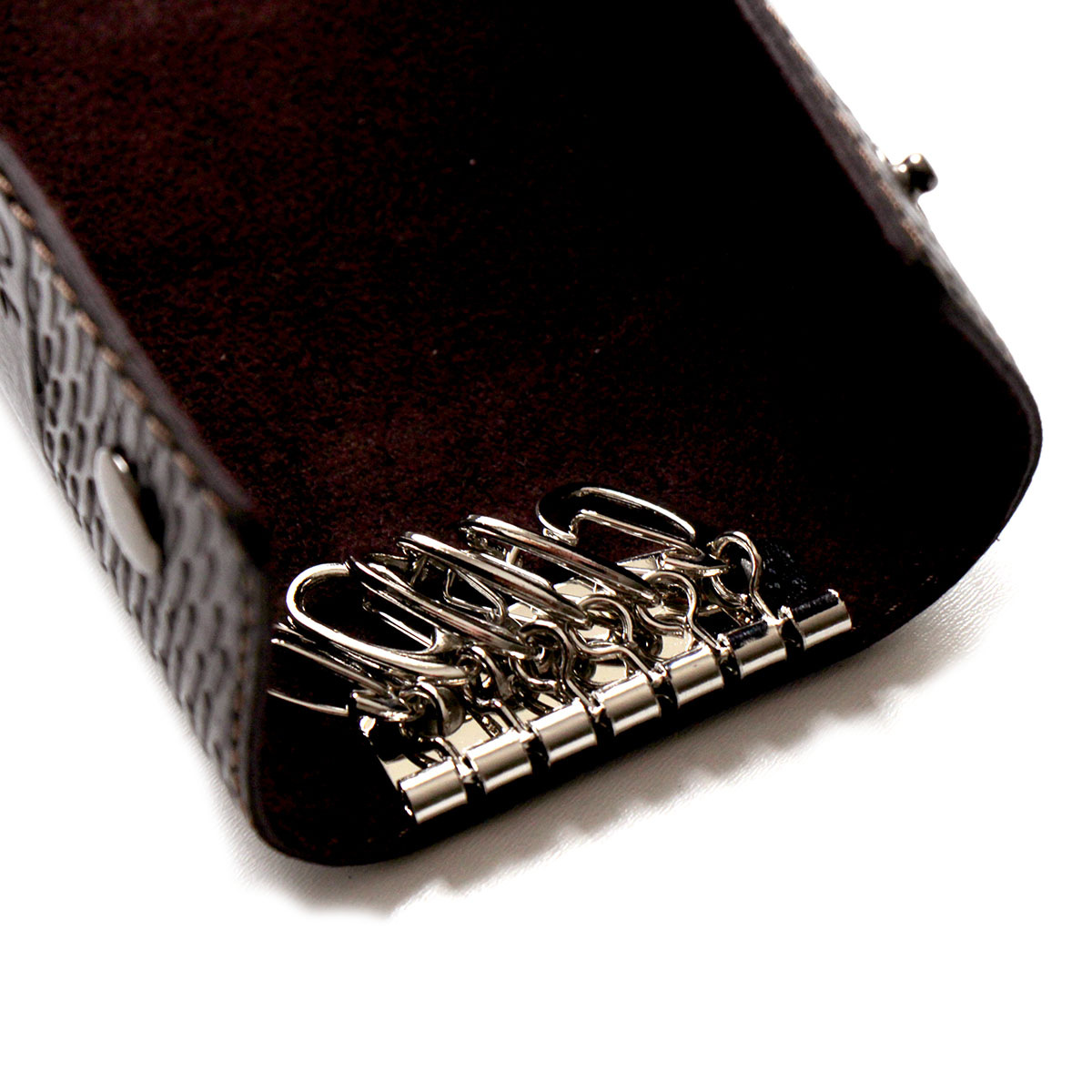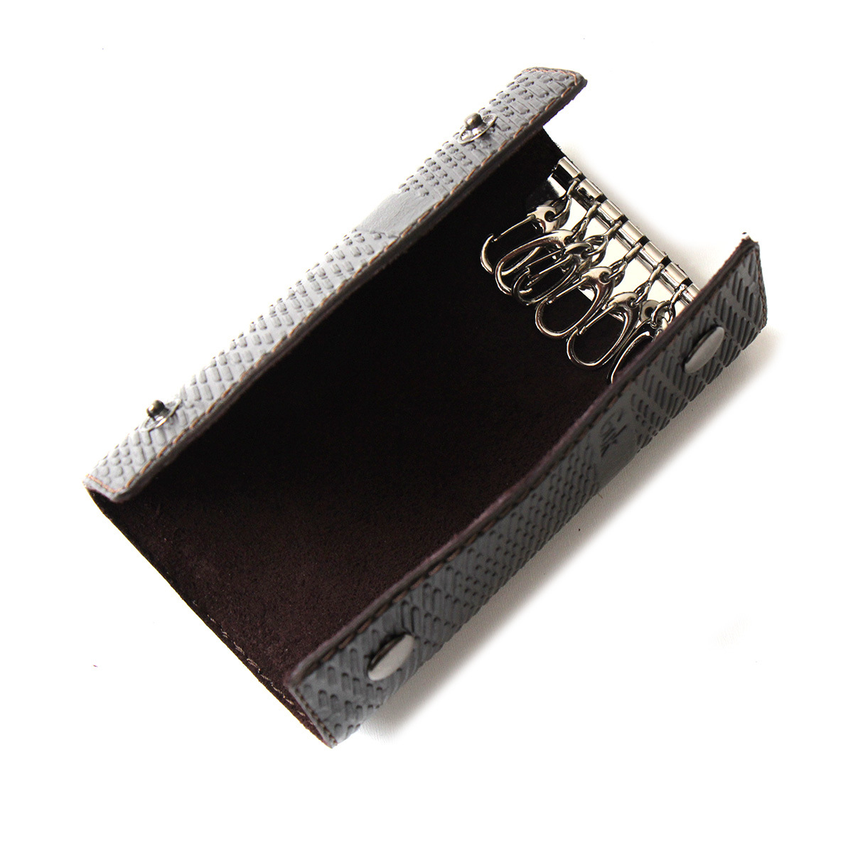 Ключница из высококачественной натуральной кожи. Ключница закрывается на две кнопки. Скручивается в трубочку, Имеет жесткую основу. Ключи крепятся на карабины.