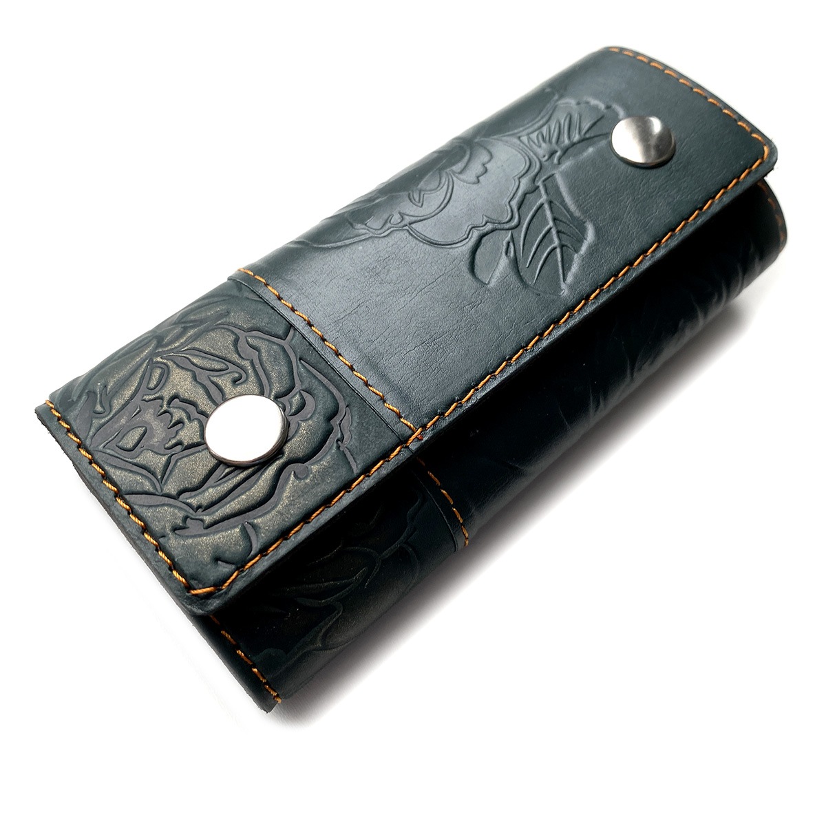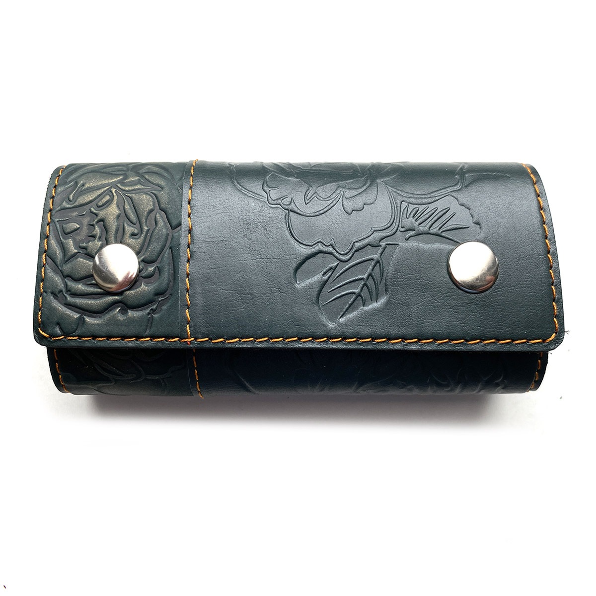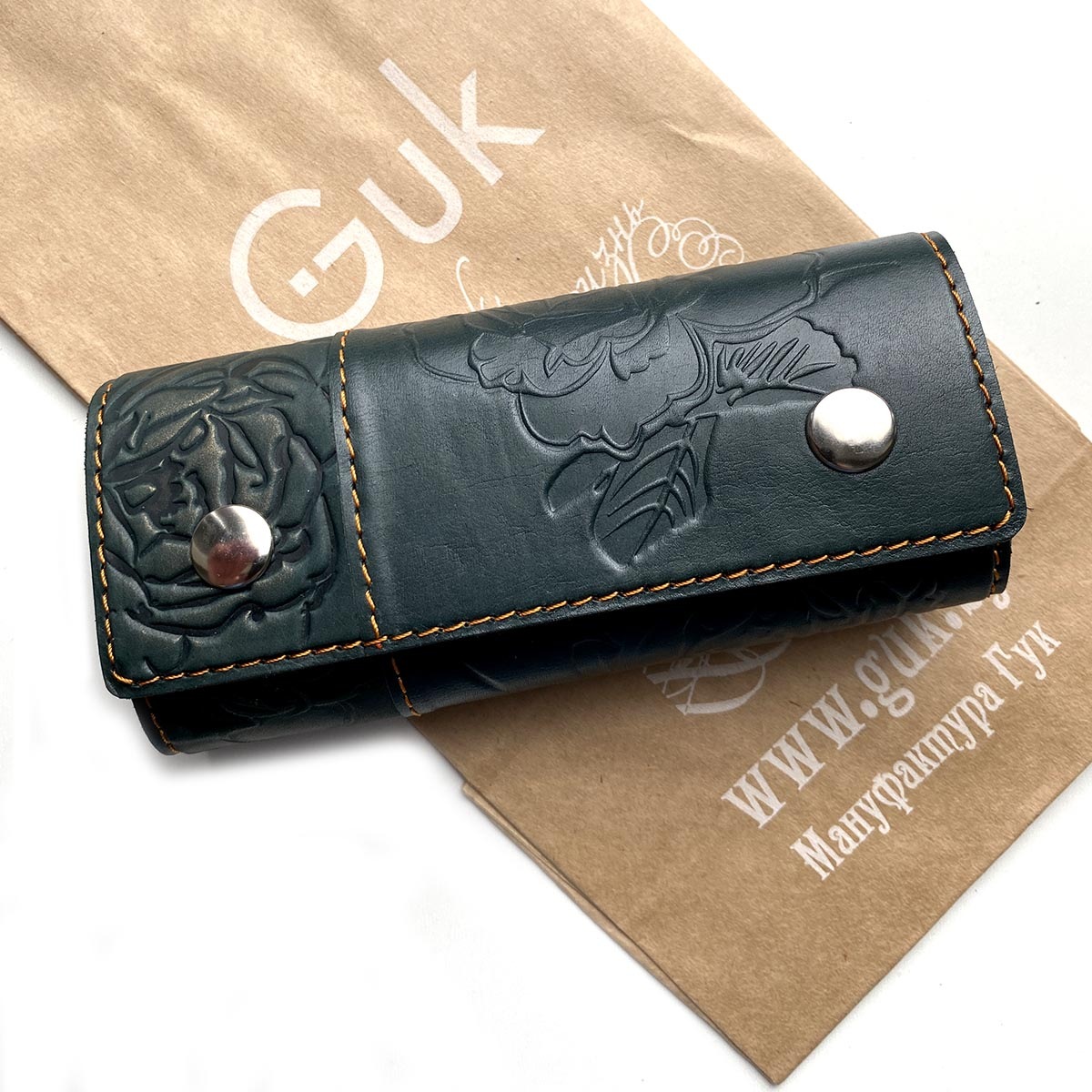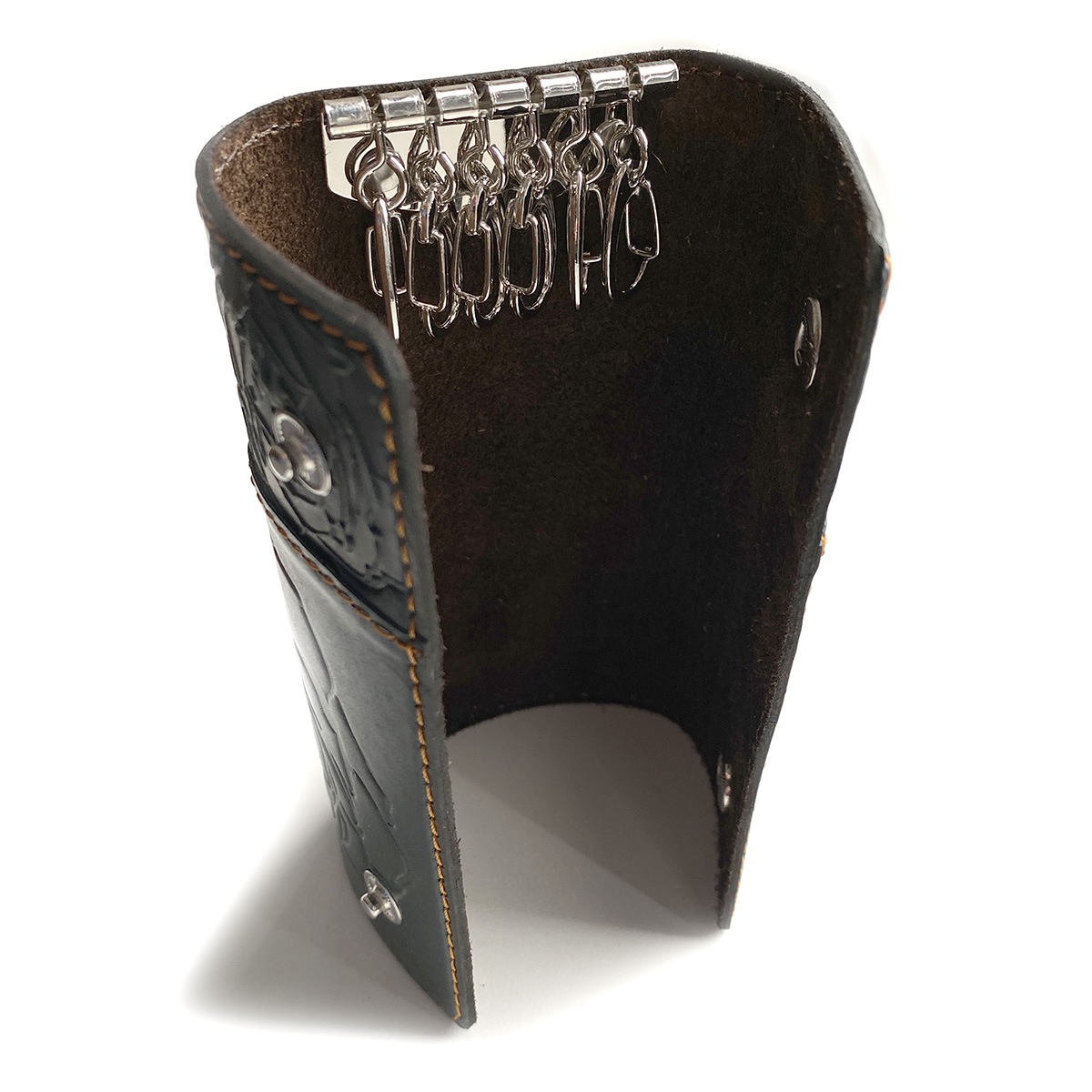 Ключница из высококачественной натуральной кожи с оригинальным тиснением. Ключница закрывается на две кнопки. Скручивается в трубочку, Имеет жесткую основу. Ключи крепятся на металлические карабины.