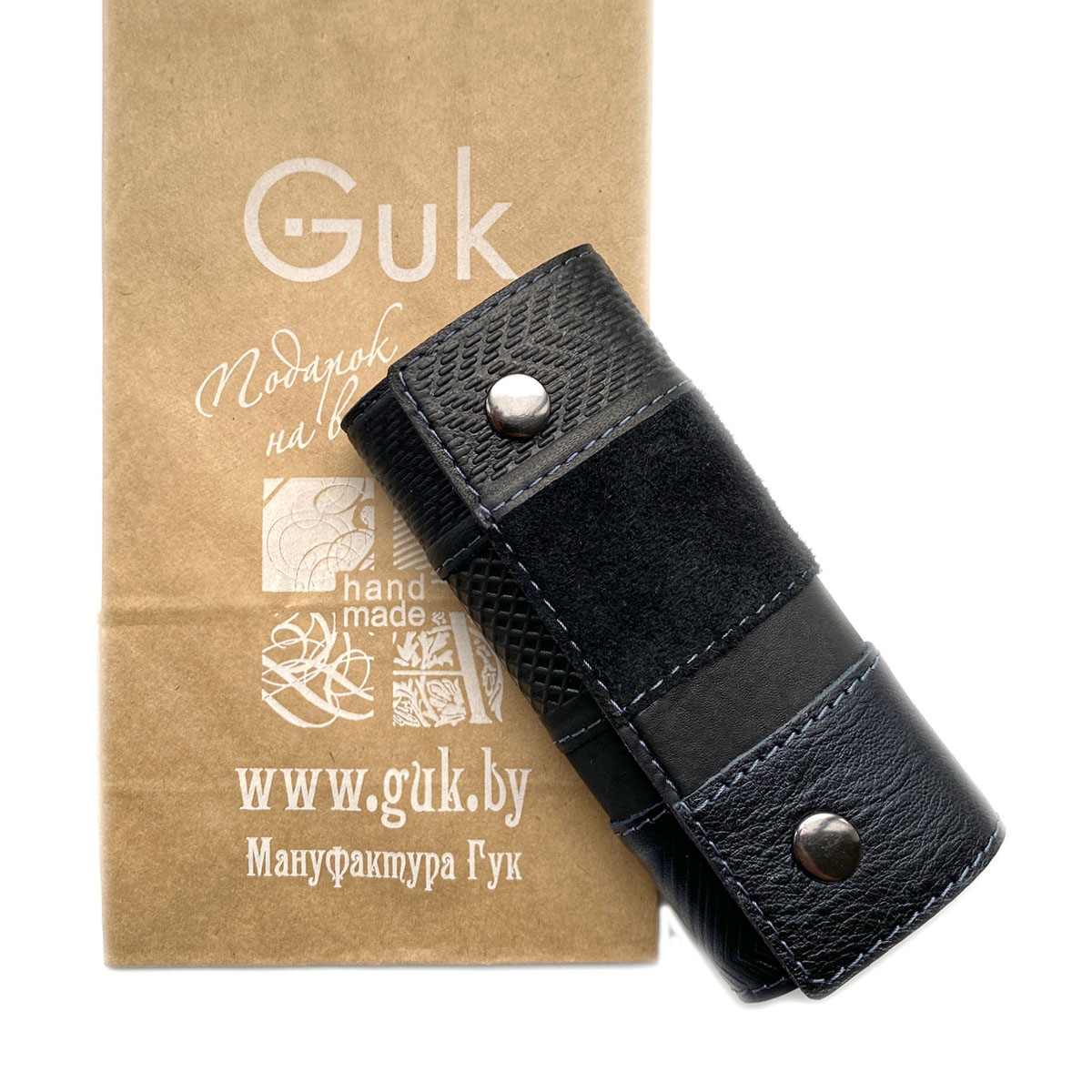 Ключница из высококачественной натуральной кожи с оригинальным тиснением. Ключница закрывается на две кнопки. Скручивается в трубочку, Имеет жесткую основу. Ключи крепятся на металлические карабины.