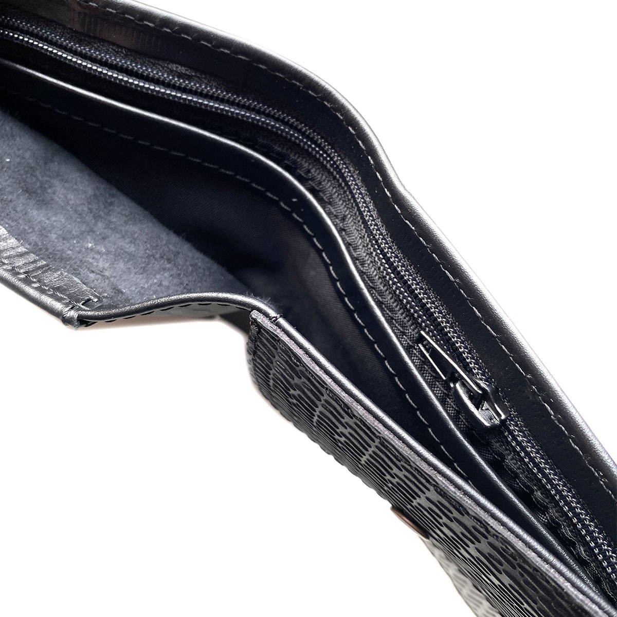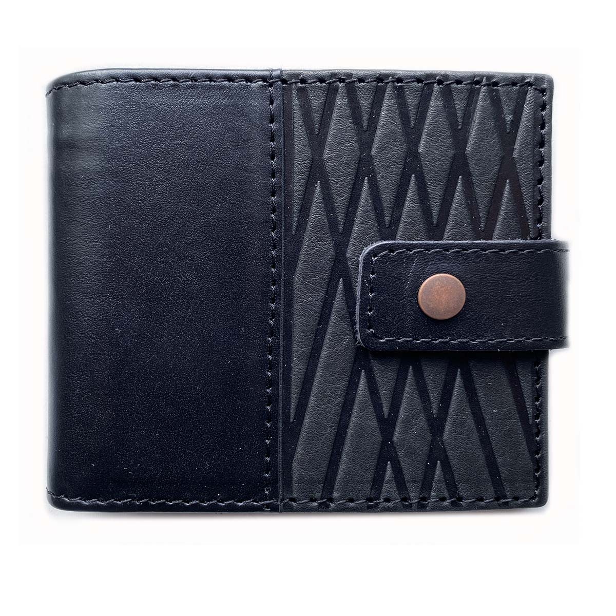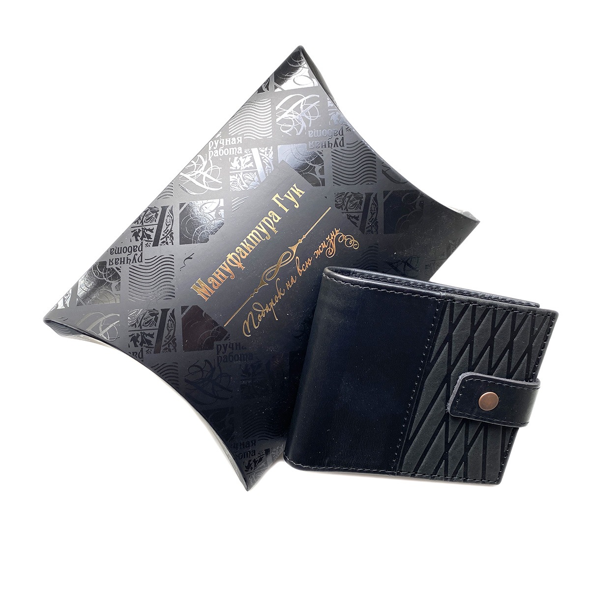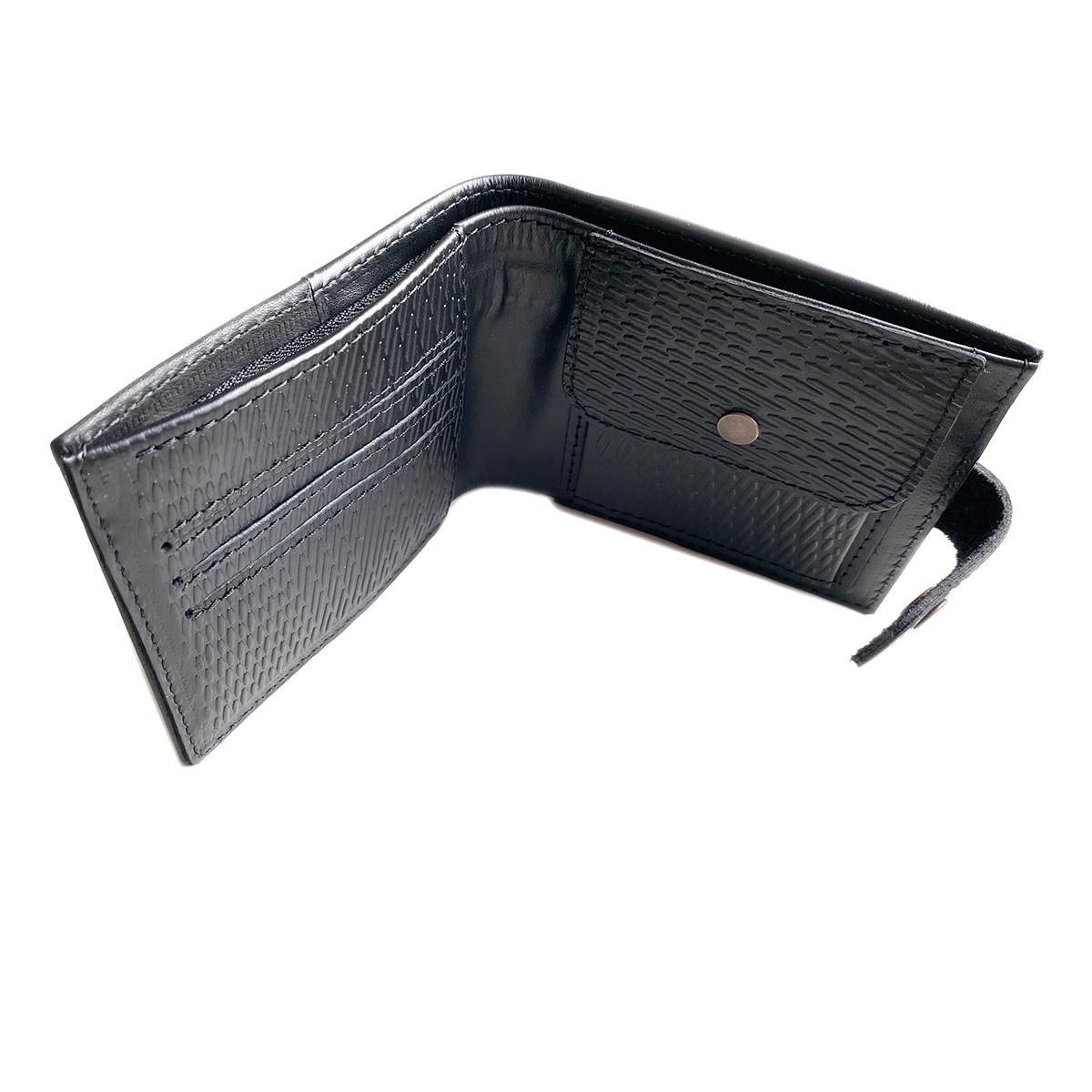 Кожаный кошелек classik "DOMUS BLACK". Имеет 2 кармана для бумажных купюр плюс карман на молнии. Слева 3 кармана для карточек, справа карман для мелочи на кнопке.