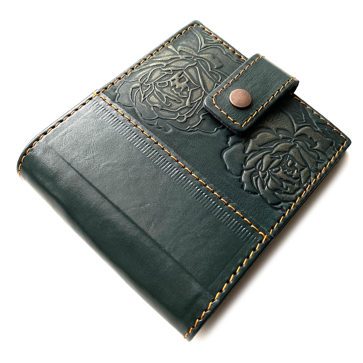 Кожаный кошелек ручной работы. Имеет 2 кармана для бумажных купюр. 5 карманов для карточек. 1 карман для мелочи.