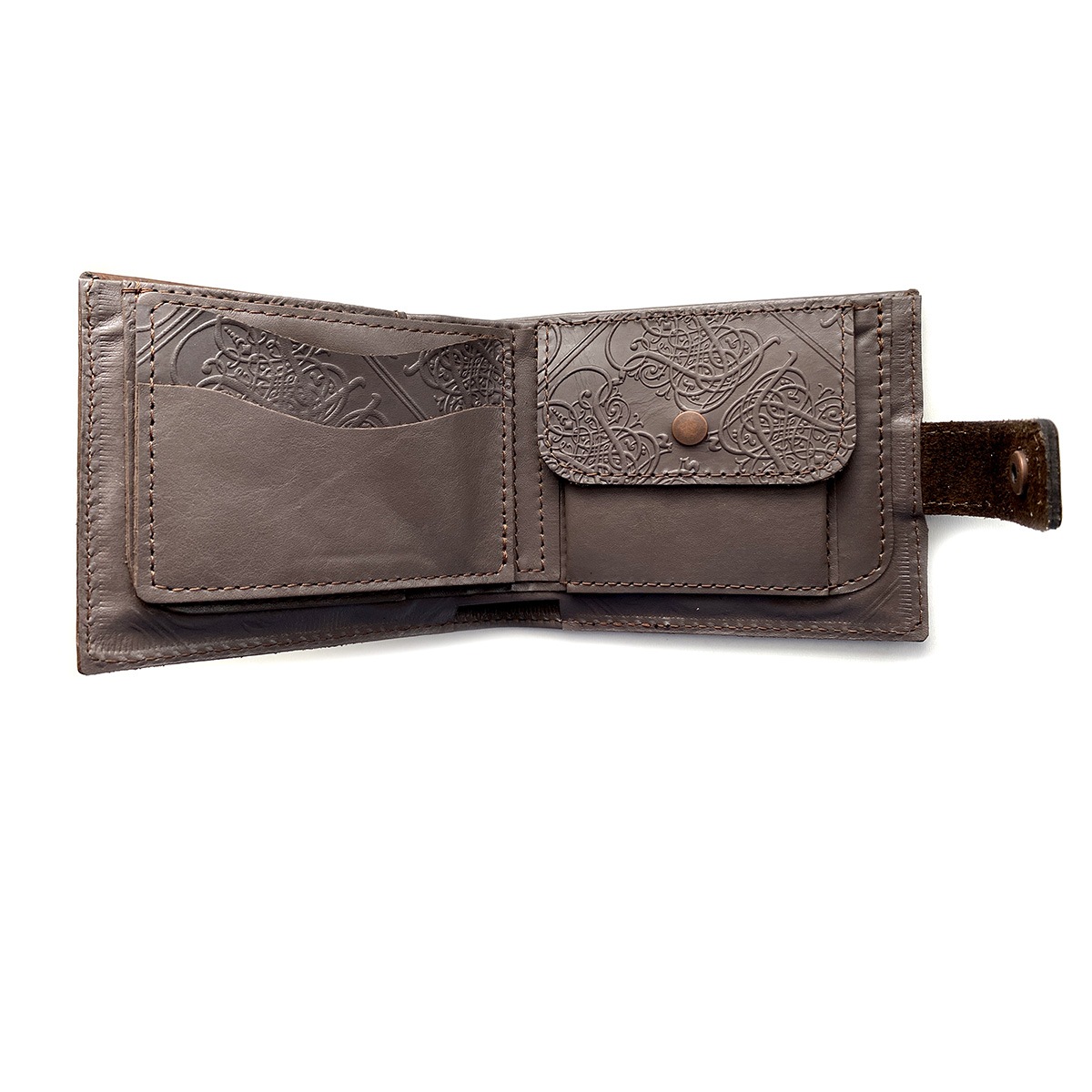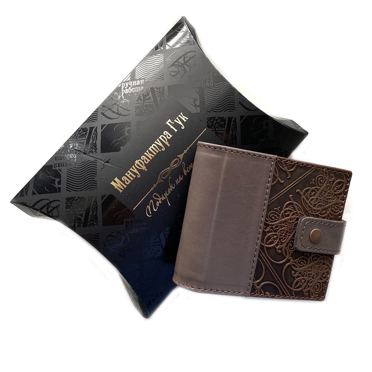 Кожаный кошелек ручной работы. Имеет 2 кармана для бумажных купюр. 5 карманов для карточек. 1 карман для мелочи.