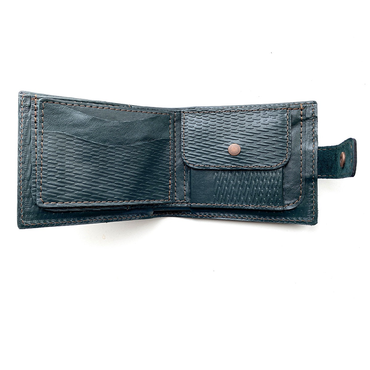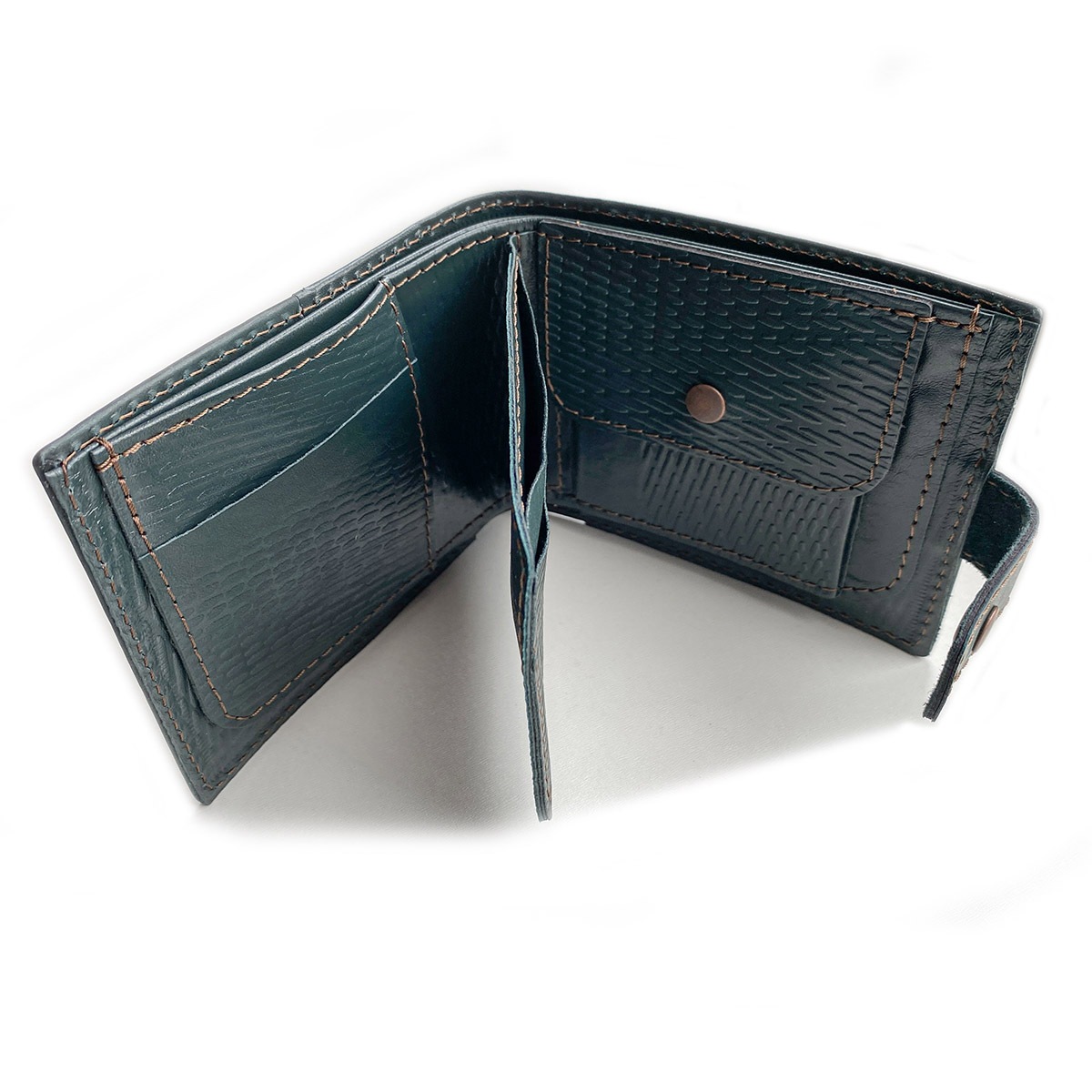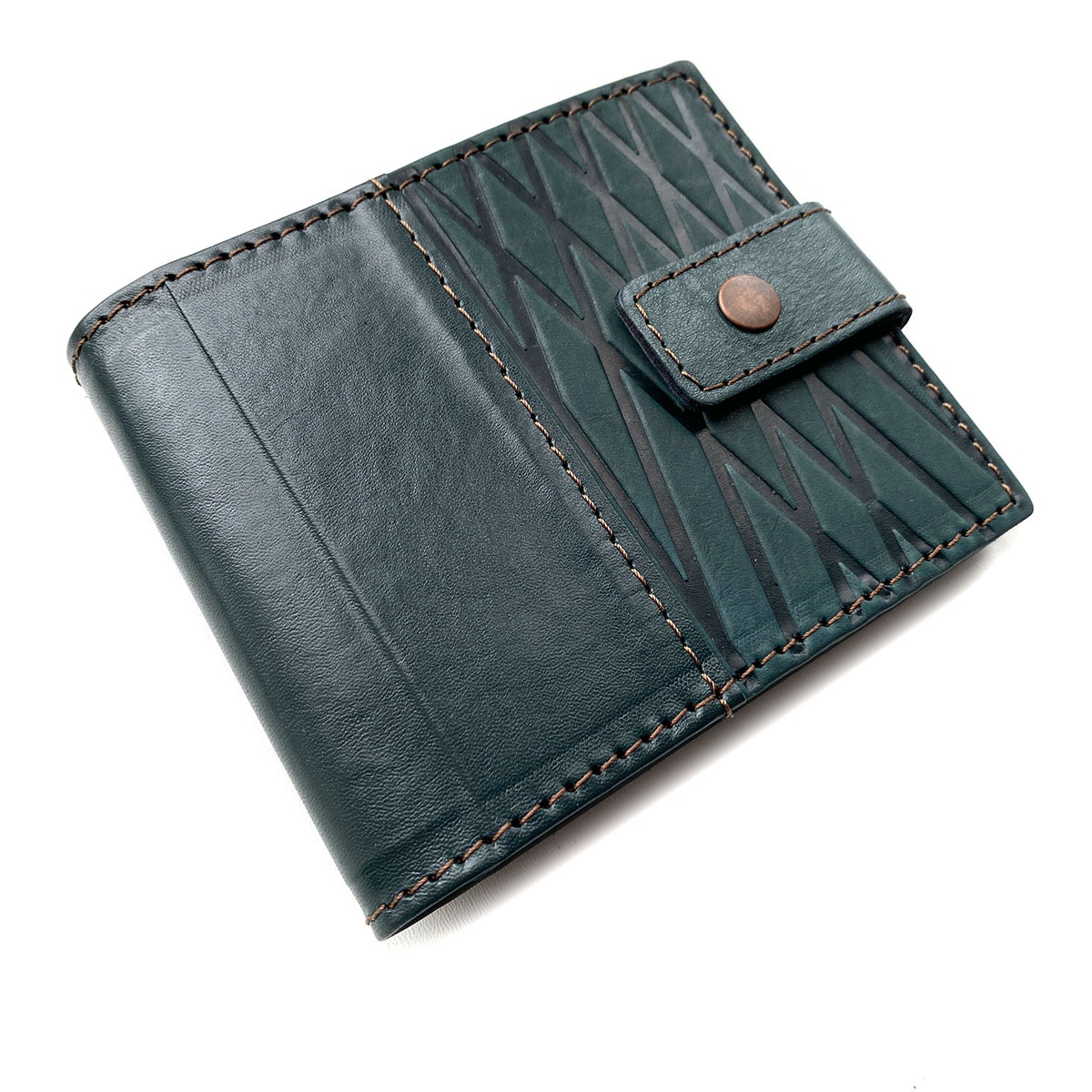 Кожаный кошелек ручной работы "DOMUS GREEN". Имеет 2 кармана для бумажных купюр. 5 карманов для карточек. 1 карман для мелочи.