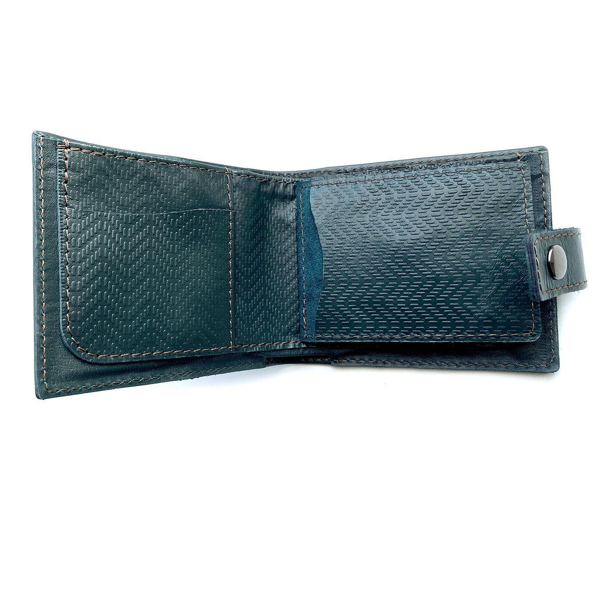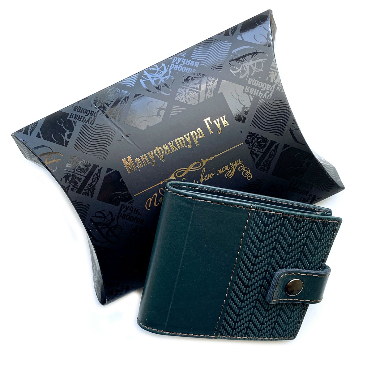 Кожаный кошелек ручной работы "КОЛОС GREEN". Имеет 2 кармана для бумажных купюр. 5 карманов для карточек. 1 карман для мелочи.