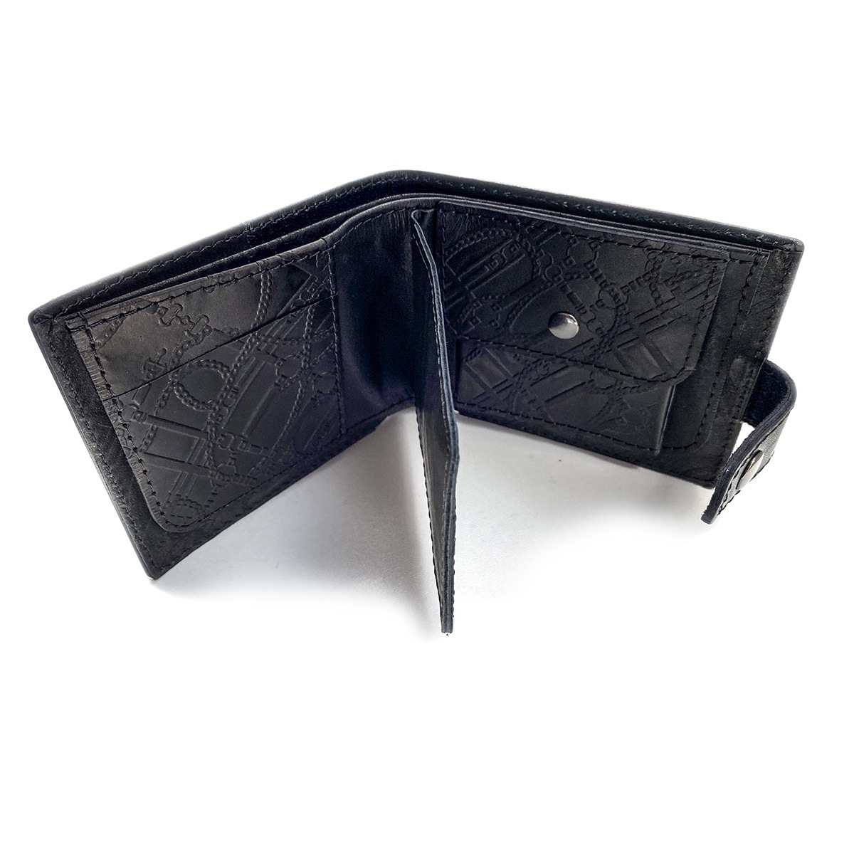 Кожаный кошелек ручной работы "GLAMUR BLACK". Имеет 2 кармана для бумажных купюр. 5 карманов для карточек. 1 карман для мелочи.
