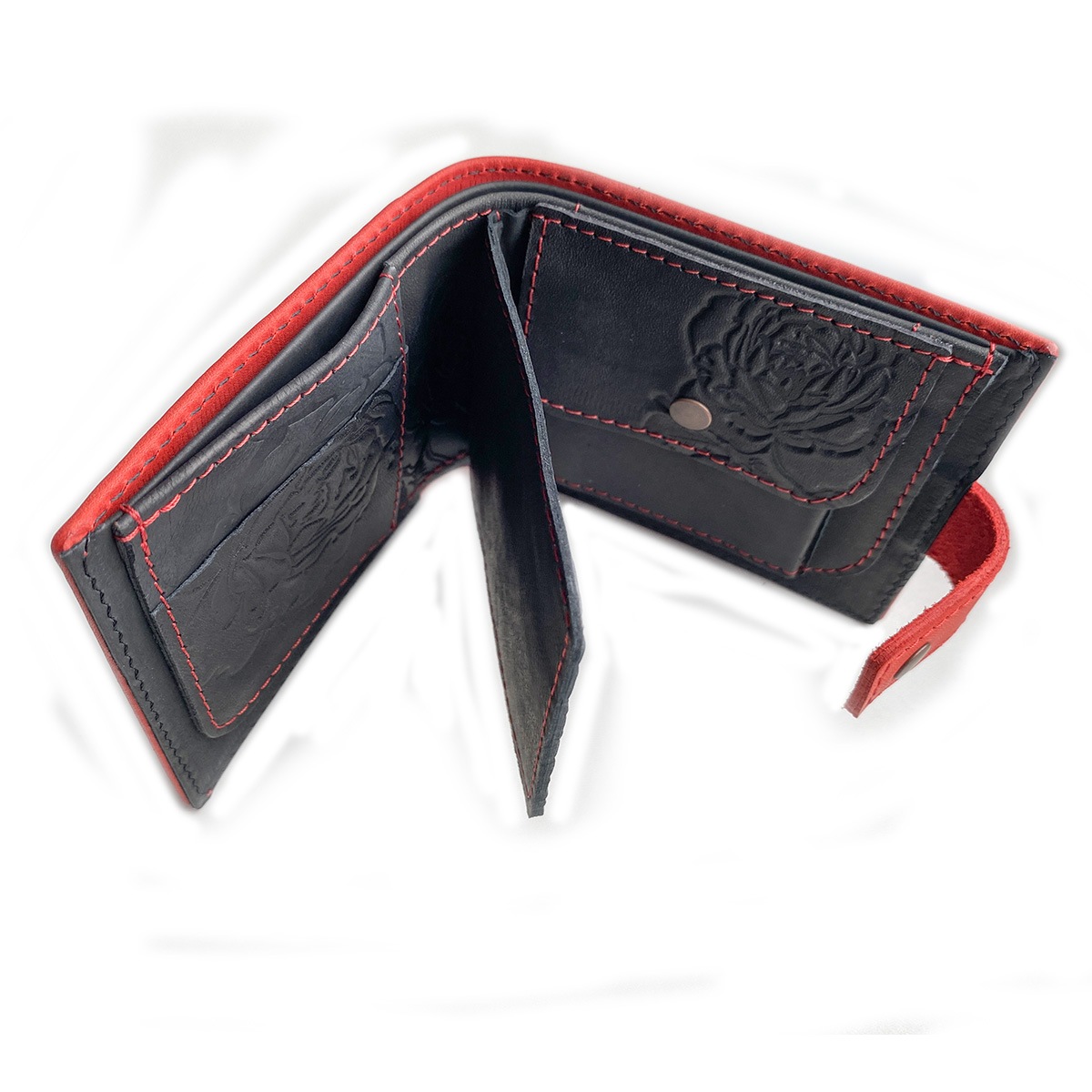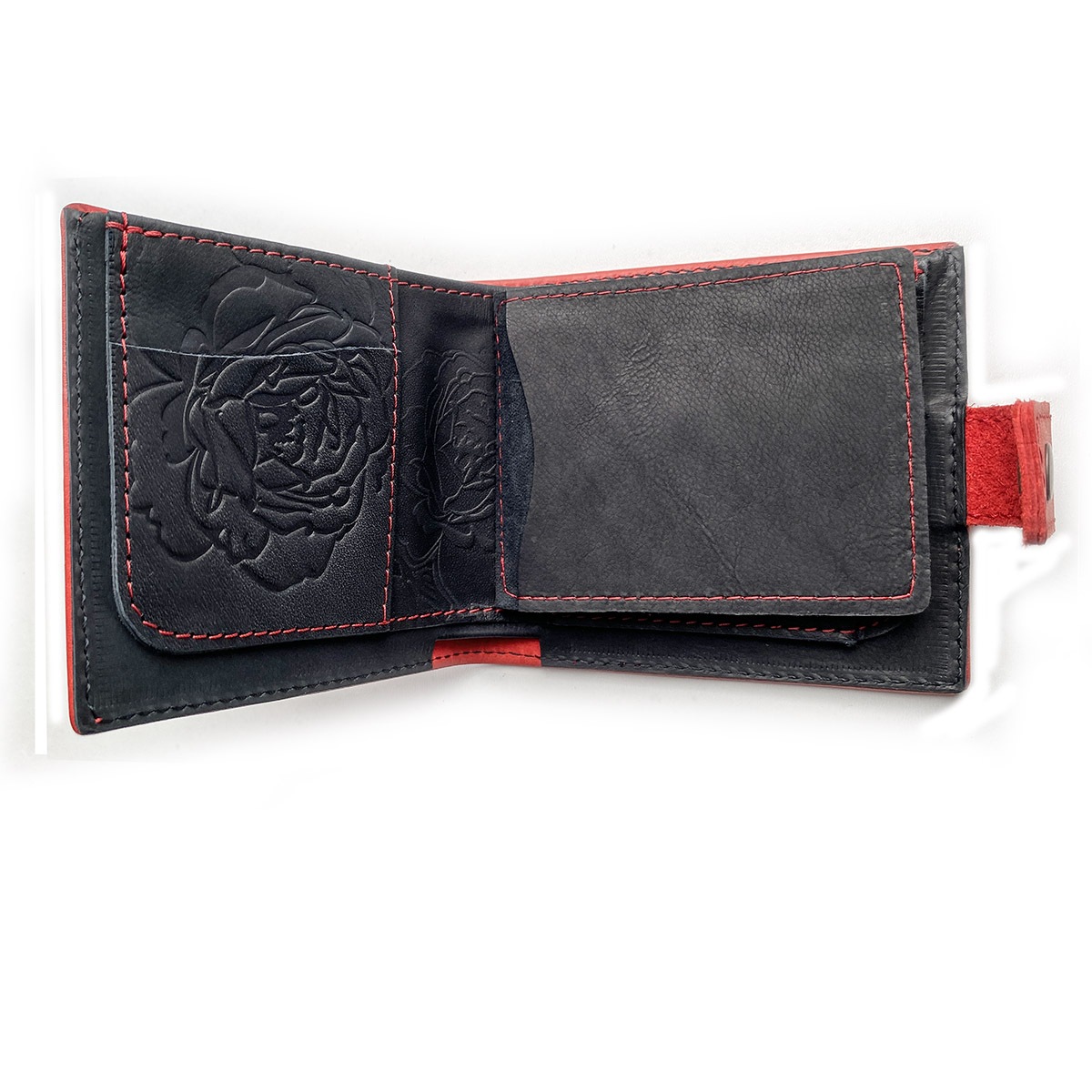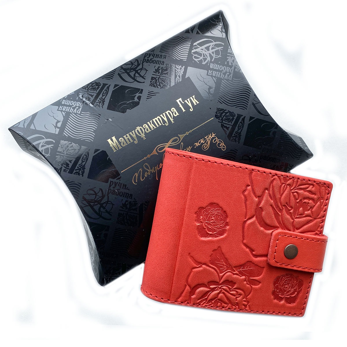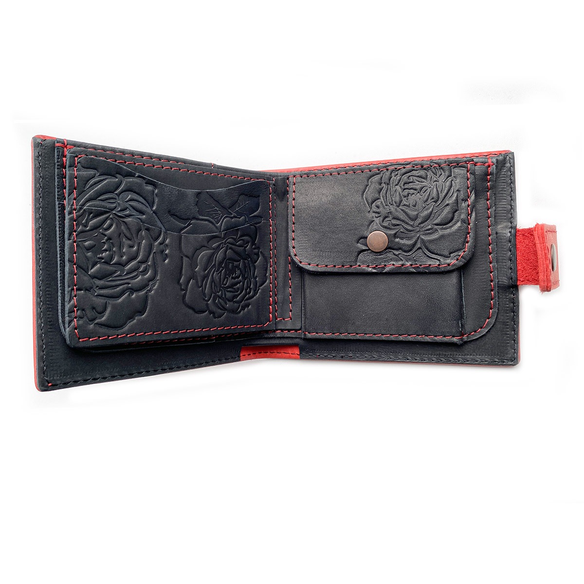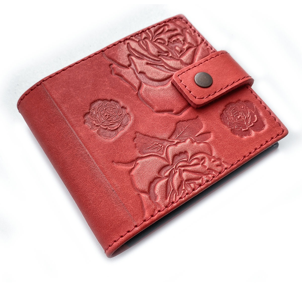 Кожаный кошелек ручной работы "ROSES". Имеет 2 кармана для бумажных купюр. 5 карманов для карточек. 1 карман для мелочи.