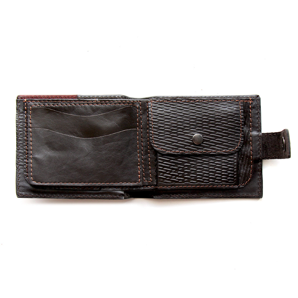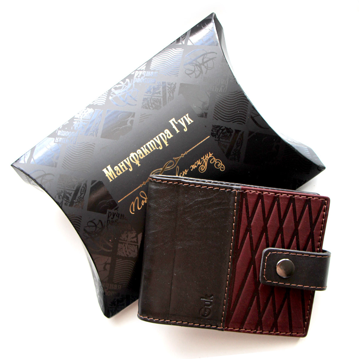 Кожаный кошелек ручной работы "DOMUS". Имеет 2 кармана для бумажных купюр. 5 карманов для карточек. 1 карман для мелочи.