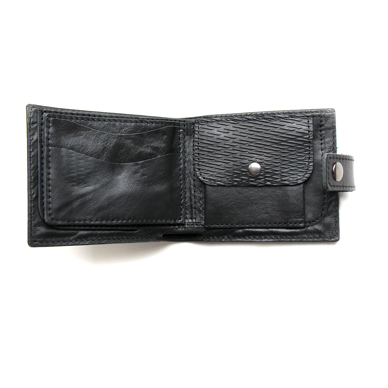 Кожаный кошелек ручной работы "RAIN BLACK". Имеет 2 кармана для бумажных купюр. 5 карманов для карточек. 1 карман для мелочи.