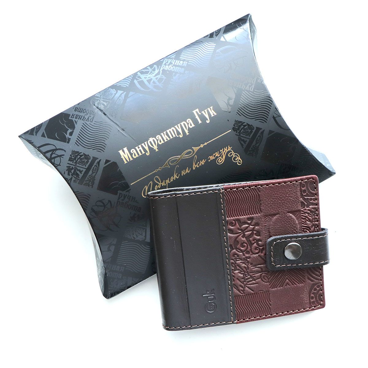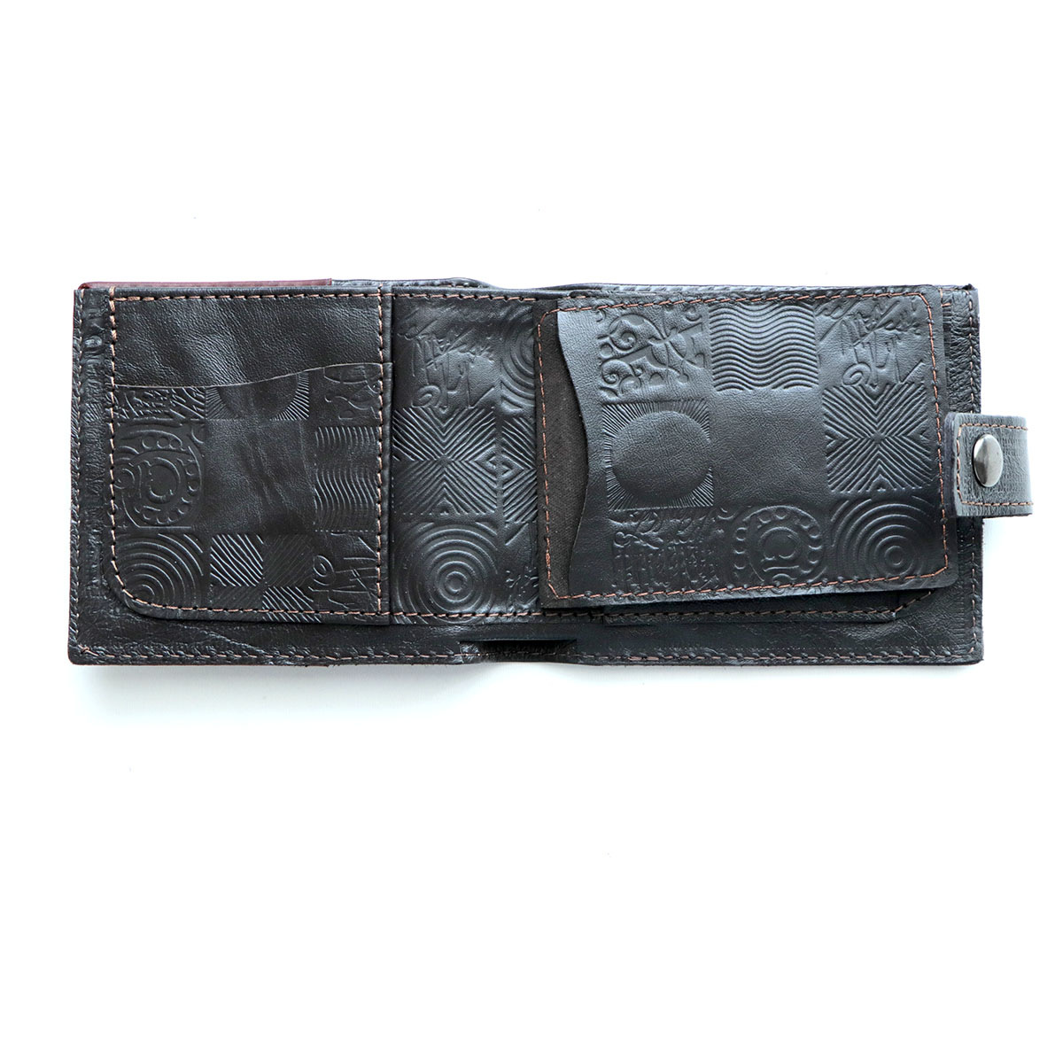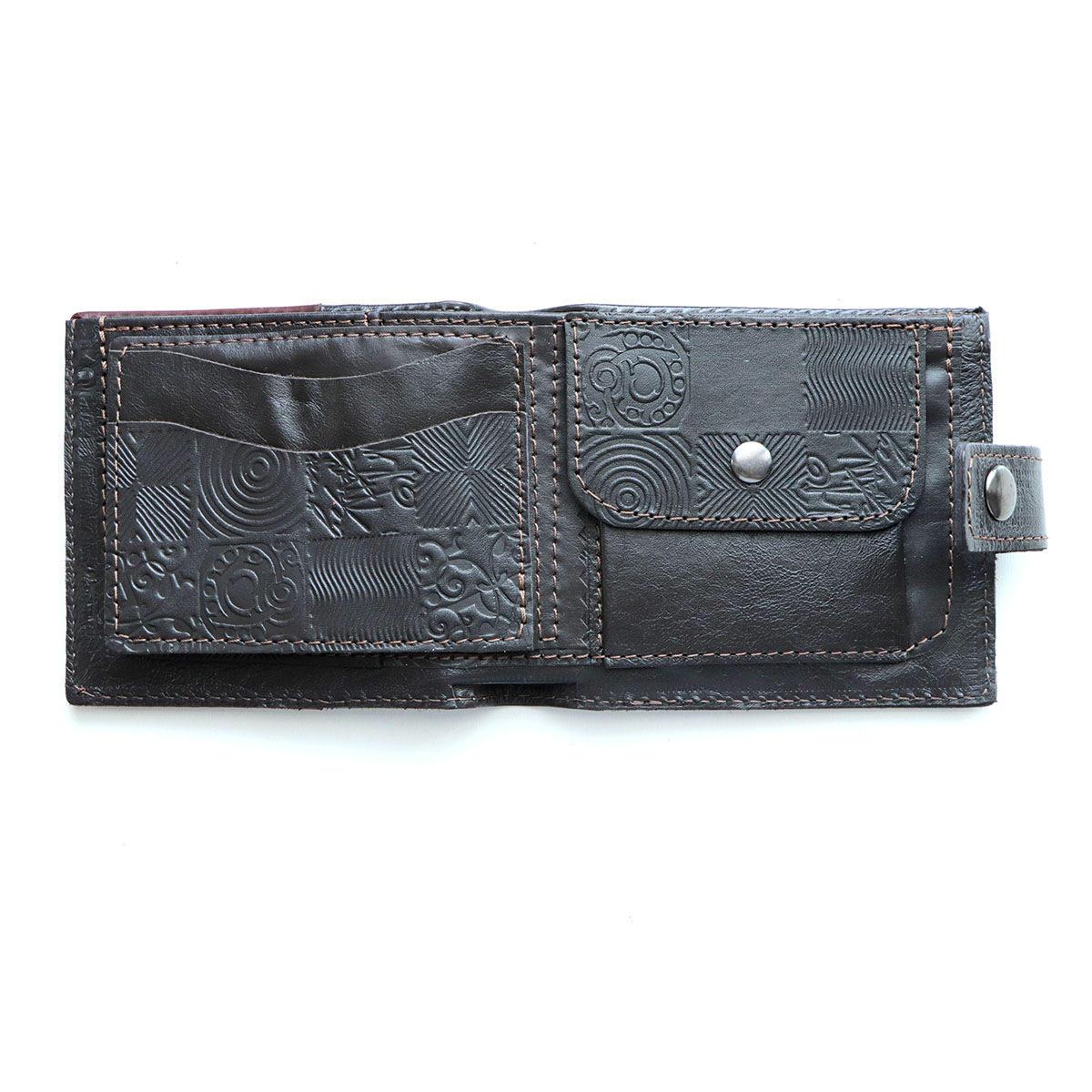 Кожаный кошелек ручной работы "MOSAIC". Имеет 2 кармана для бумажных купюр. 5 карманов для карточек. 1 карман для мелочи.