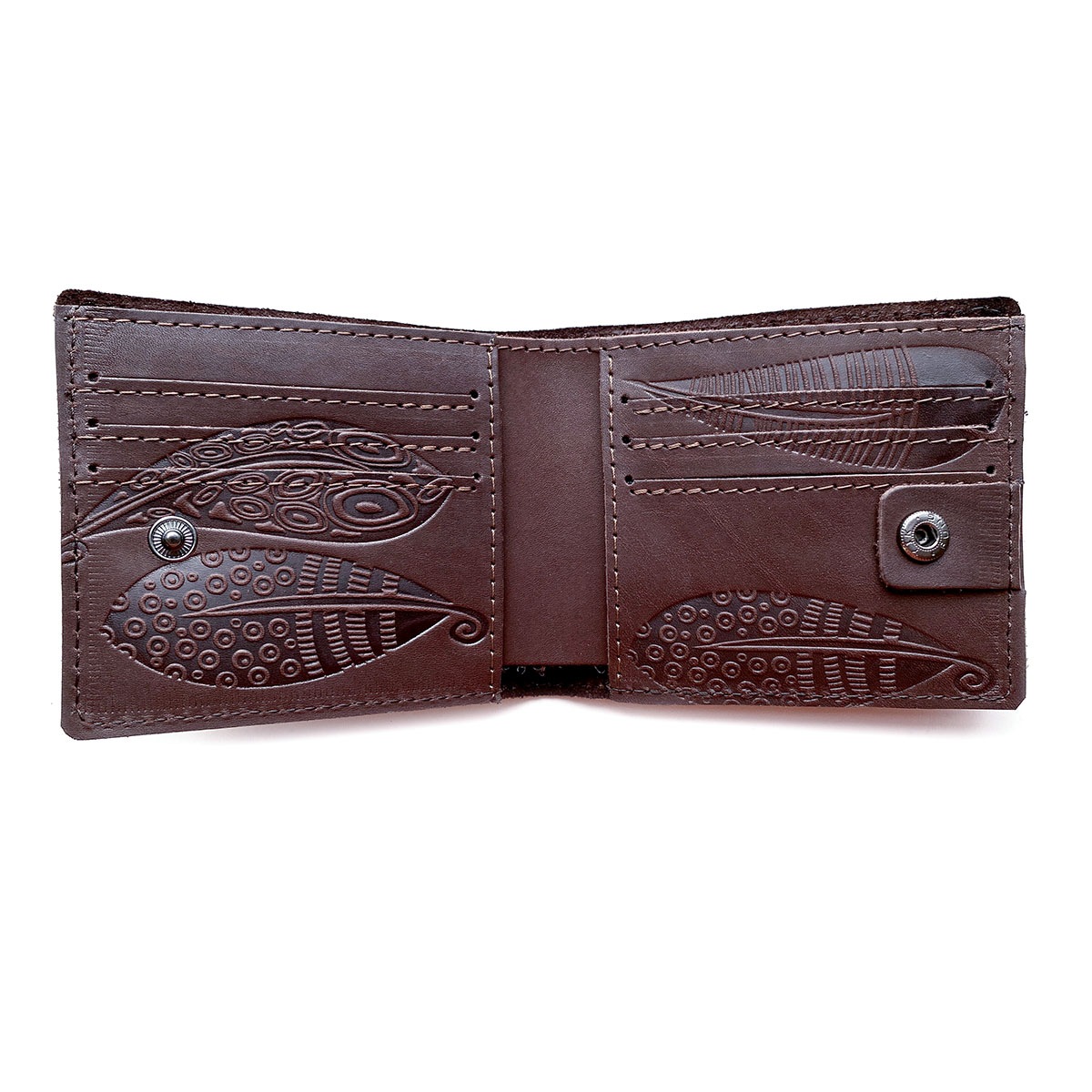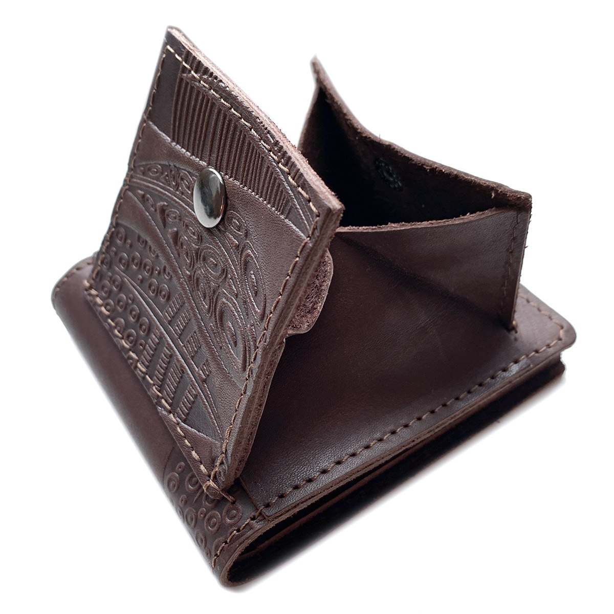 Кожаный кошелек ручной работы. Имеет 1 карман для бумажных купюр. 6 карманов для карточек. 1 карман-евромонетница для копеек.
