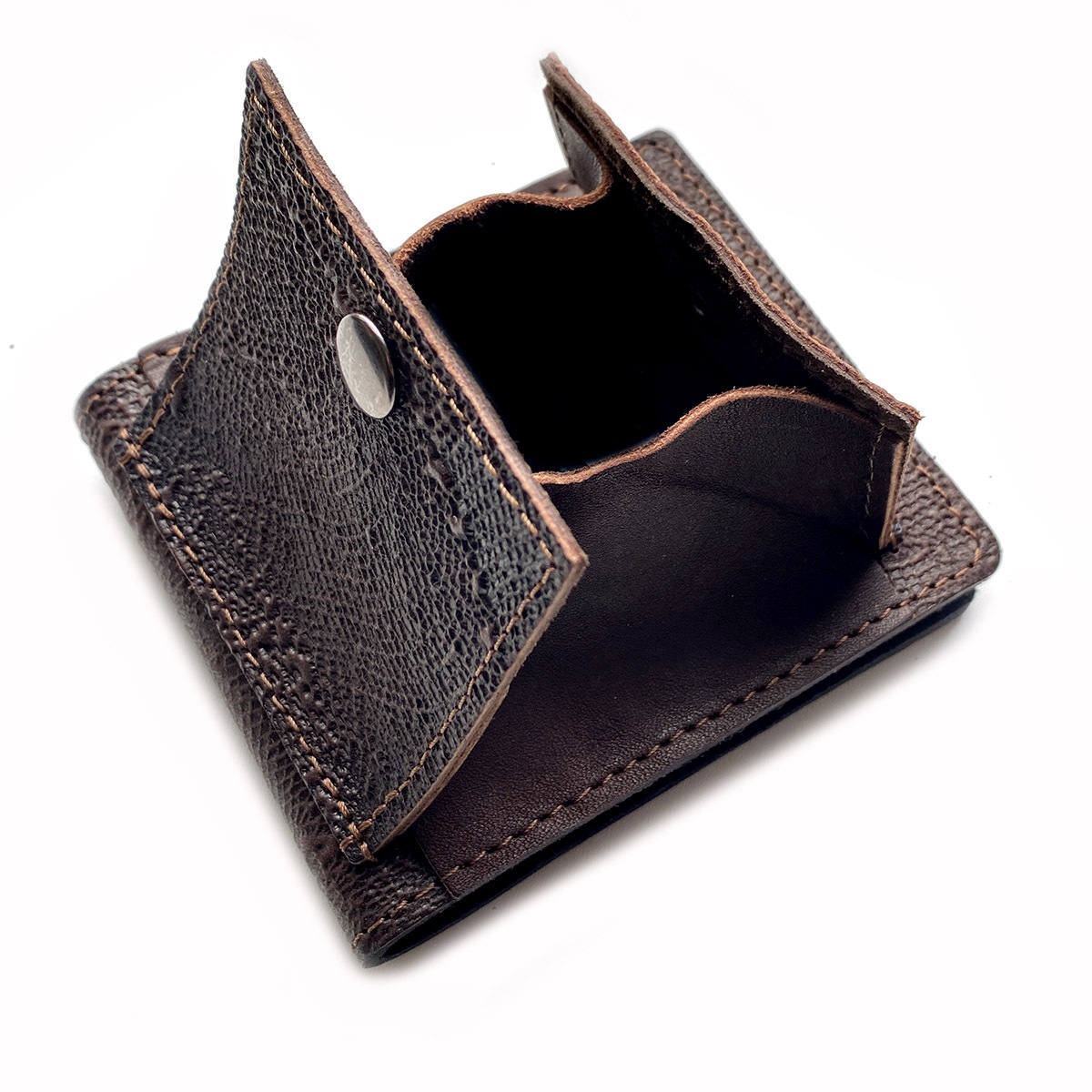 Кожаный кошелек ручной работы. Имеет 1 карман для бумажных купюр. 6 карманов для карточек. 1 карман-евромонетница для копеек.
