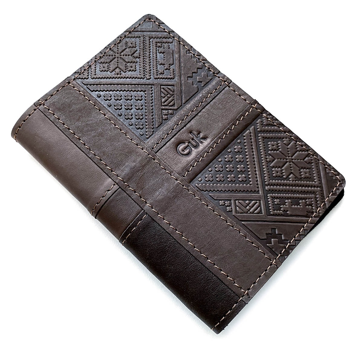 Кожаная обложка для паспорта ручной работы. Оригинальное тиснение.