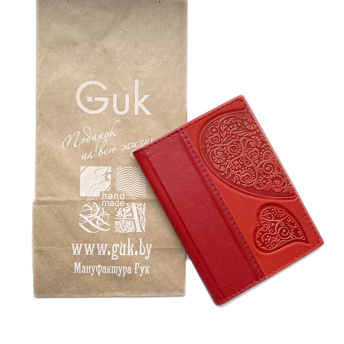 Кожаная обложка для паспорта ручной работы. Оригинальное тиснение "HEART".