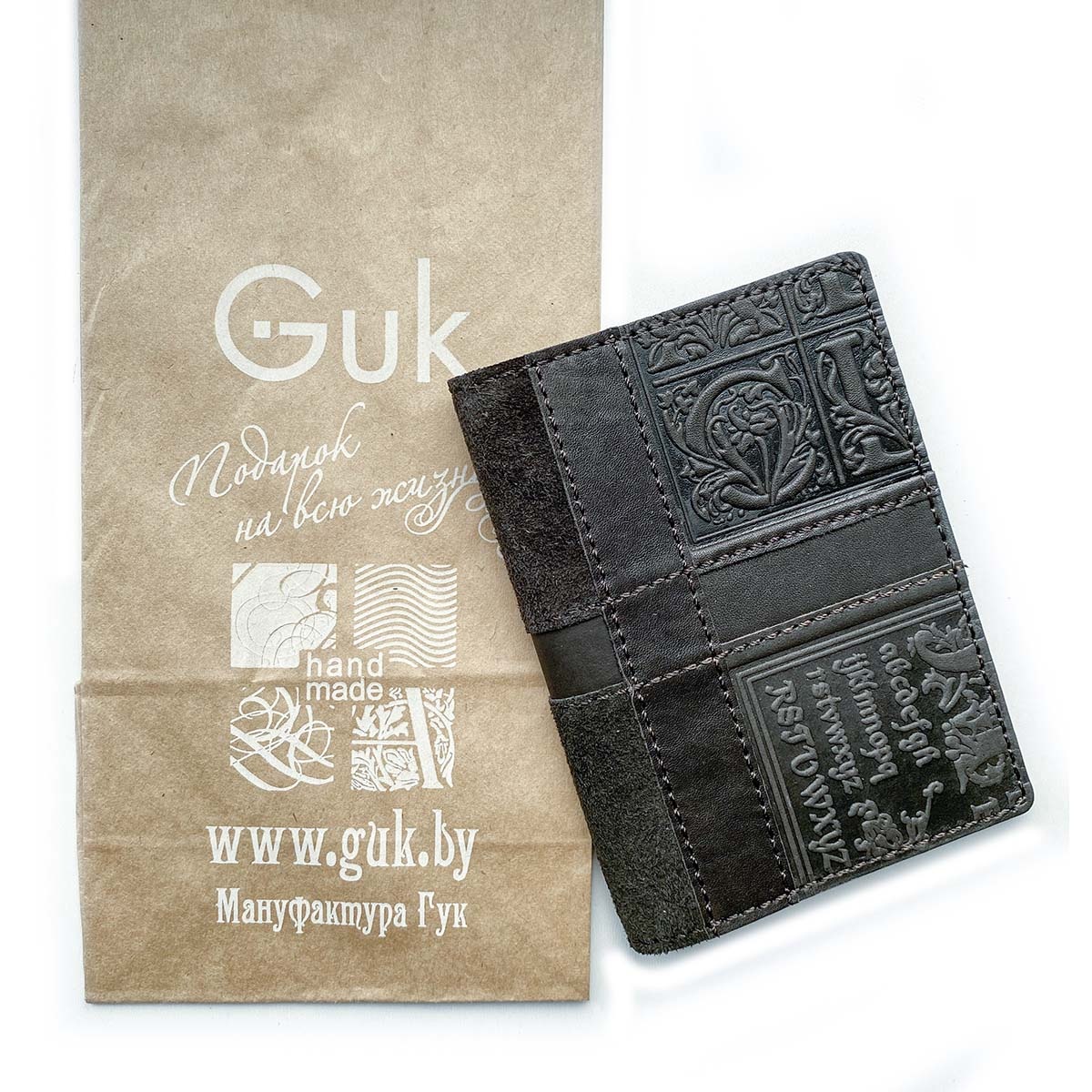 Кожаная обложка для паспорта ручной работы. Оригинальное тиснение.