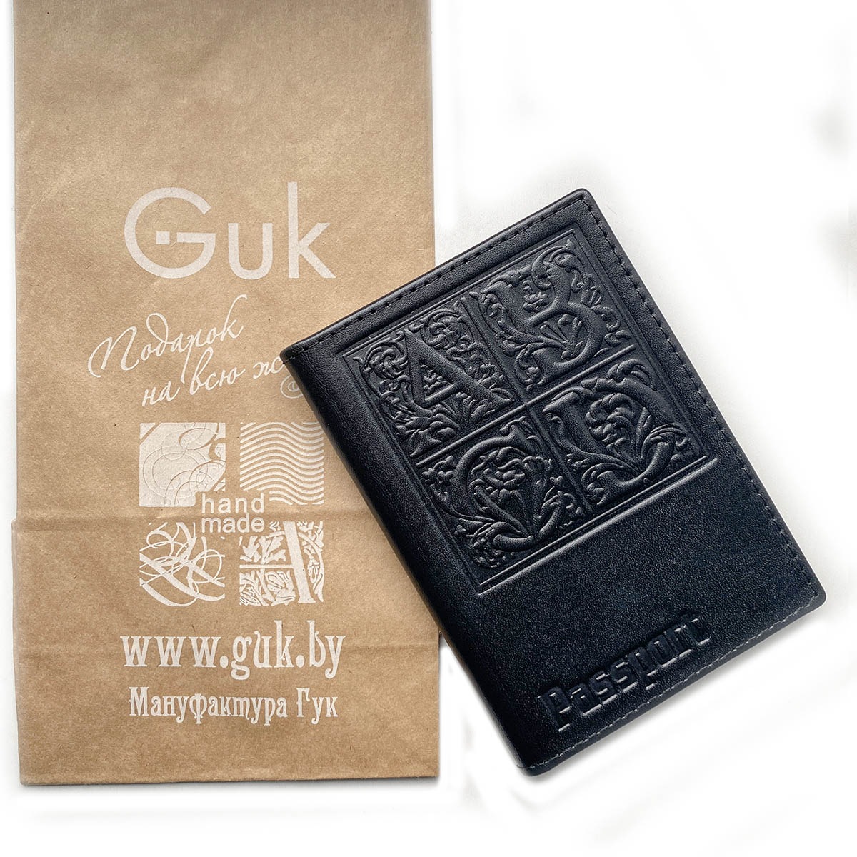 Кожаная обложка для паспорта ручной работы. Оригинальное тиснение.