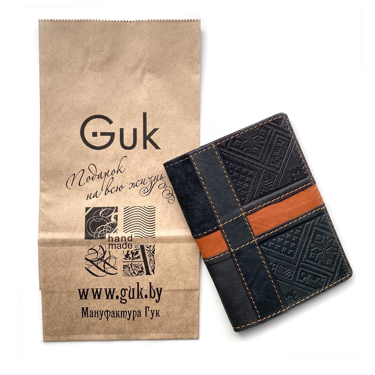 Кожаная обложка для паспорта ручной работы. Оригинальное тиснение.