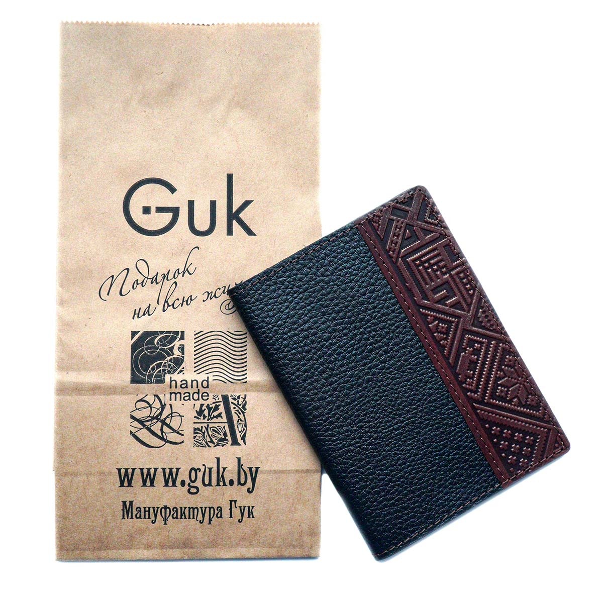 Кожаная обложка для паспорта ручной работы. Оригинальное тиснение.