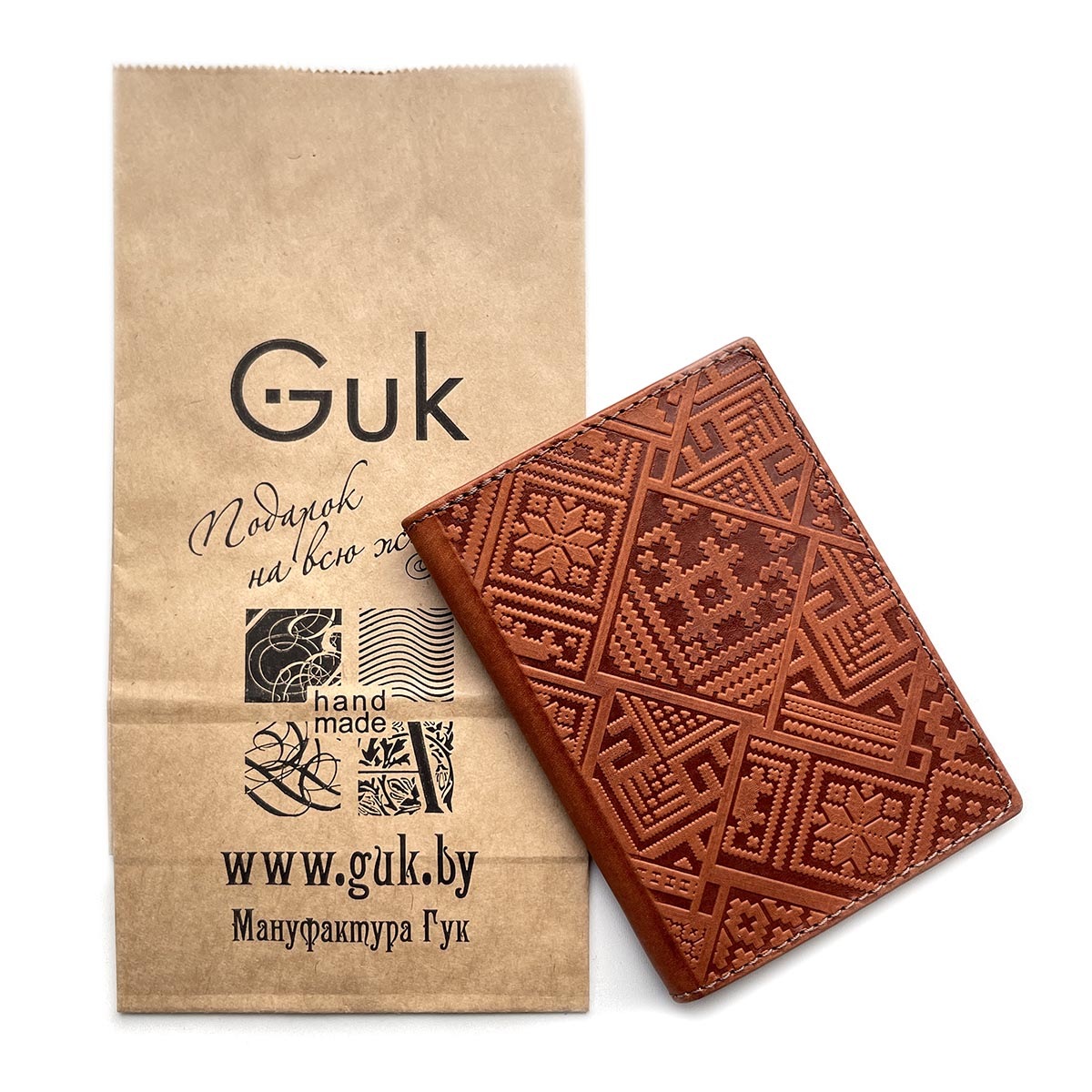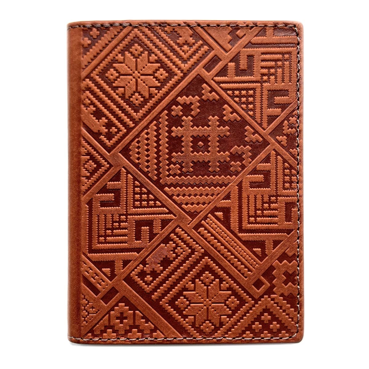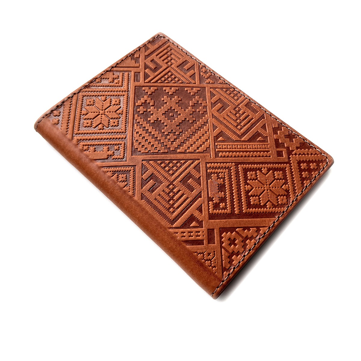 Кожаная обложка для паспорта ручной работы. Оригинальное тиснение.