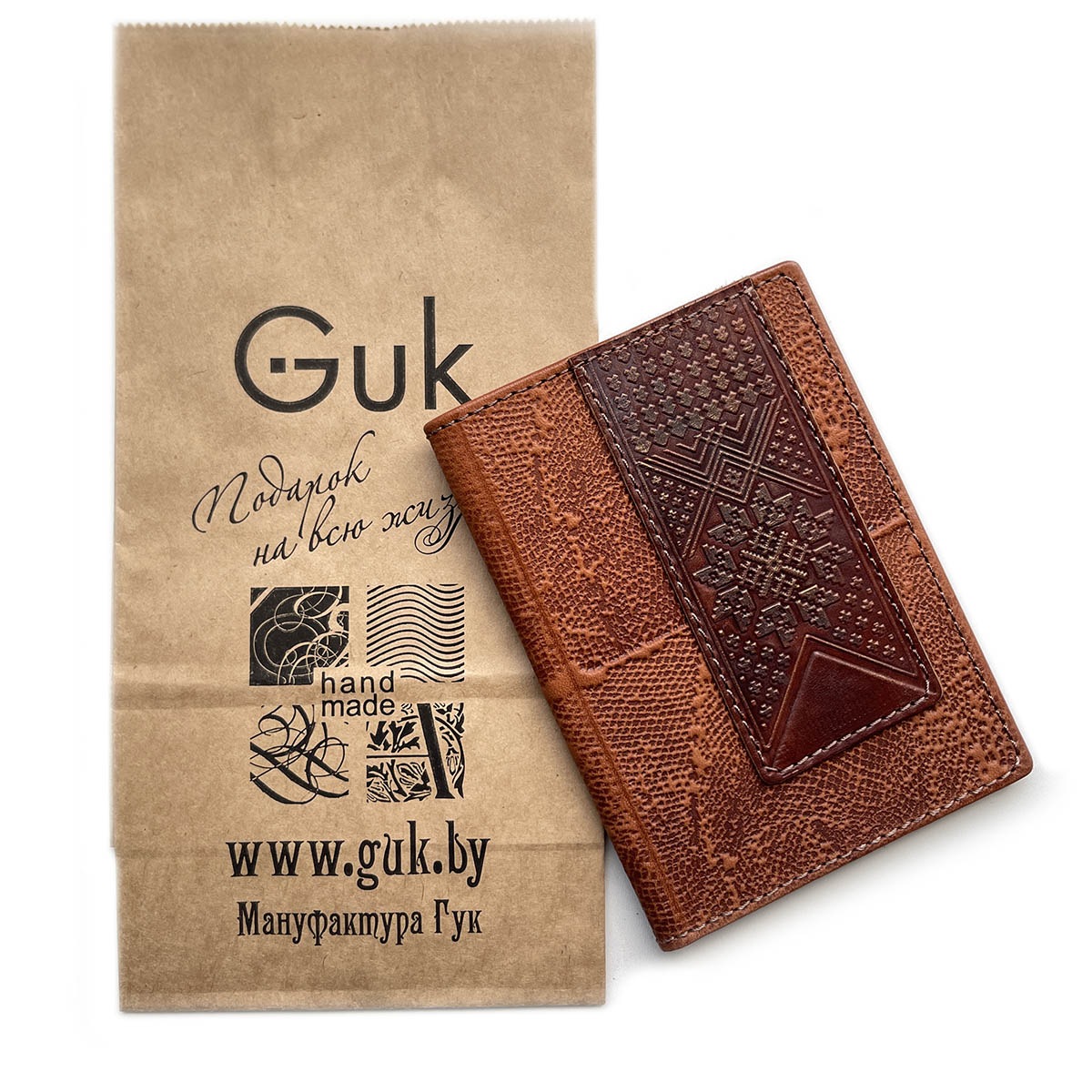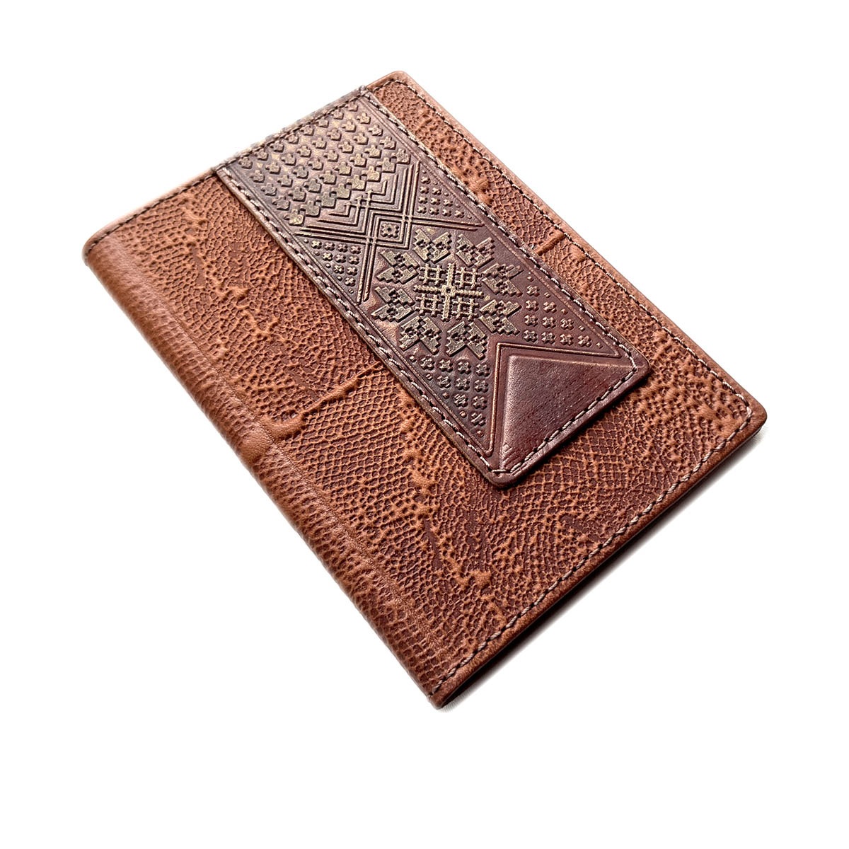 Кожаная обложка для паспорта ручной работы. Оригинальное тиснение.
