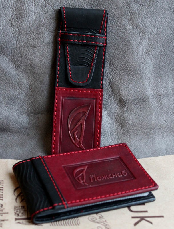 Пример футляр для ручки и визитница с нанесением логотипа. Стоимость согласовывается индивидуально.