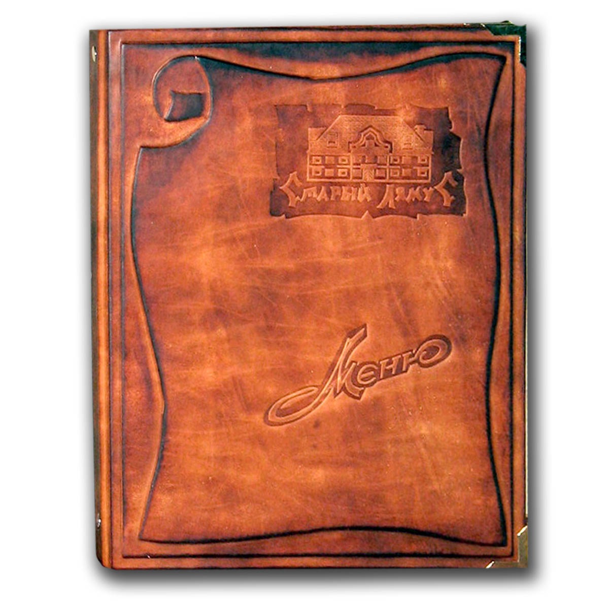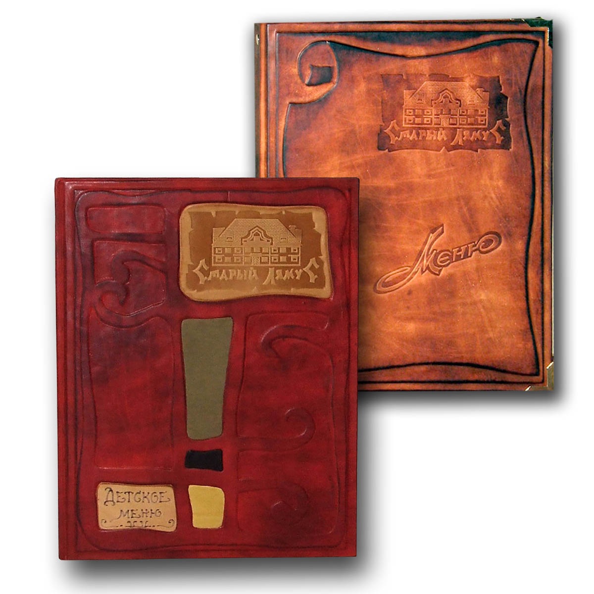 Пример набора кожаных папок для ресторана. Кожаная папка для меню и папка для детского меню. Кожаные папки-меню изготавливаем только под заказ от 5-ти единиц. Крепление файлов может по выбору заказчика осуществляться на кольцевой механизм, либо на стяжные болты. Цвет и дизайн папки согласовываются дополнительно. В стоимость папки не включено изготовление клише для тиснения логотипа или надписи. Его стоимость зависит от размера и сложности рисунка, и в среднем составляет около 50 белорусских рублей. При заказе на сумму от 700 белорусских рублей одно клише для тиснения размером до 8х8 см мы изготавливаем для заказчика бесплатно.