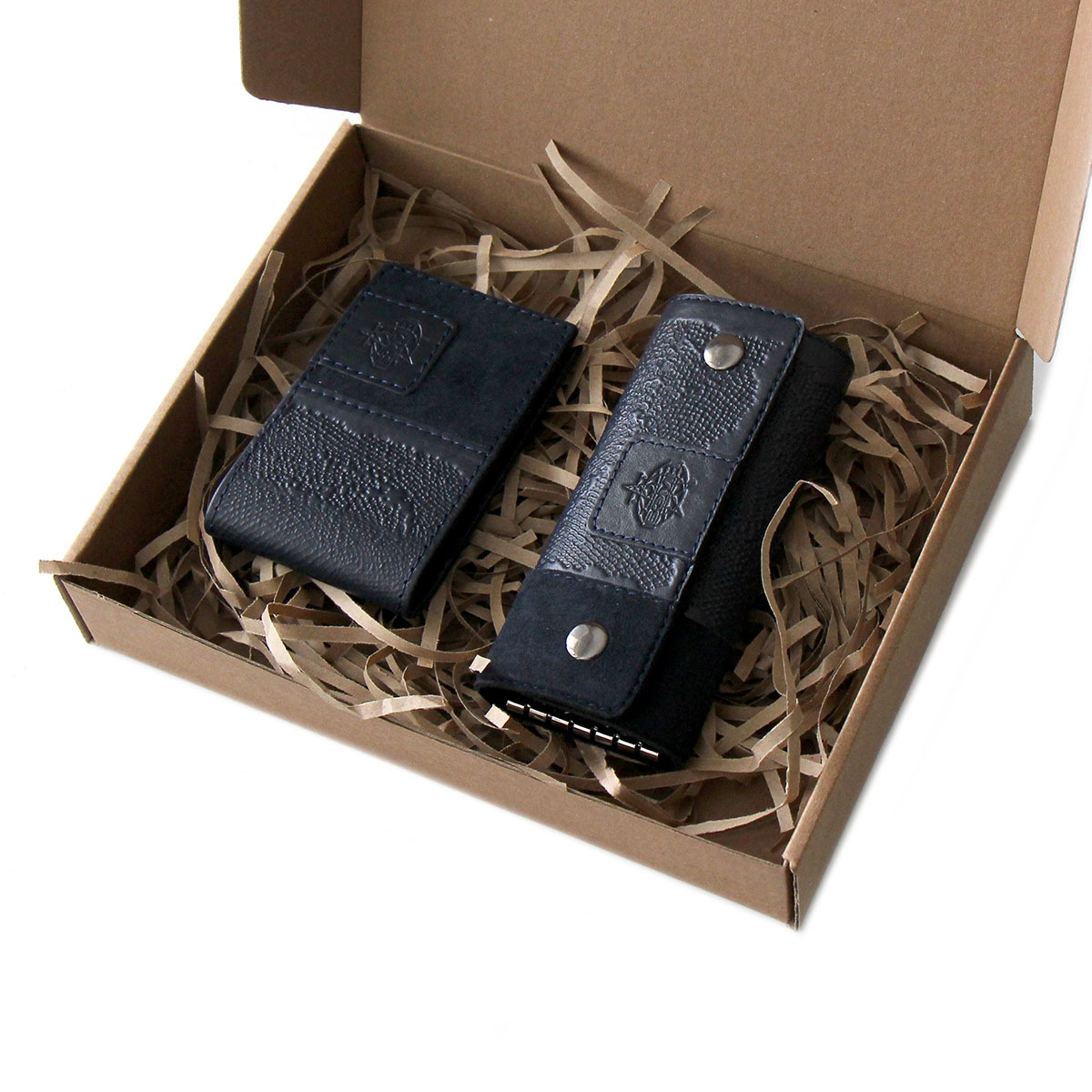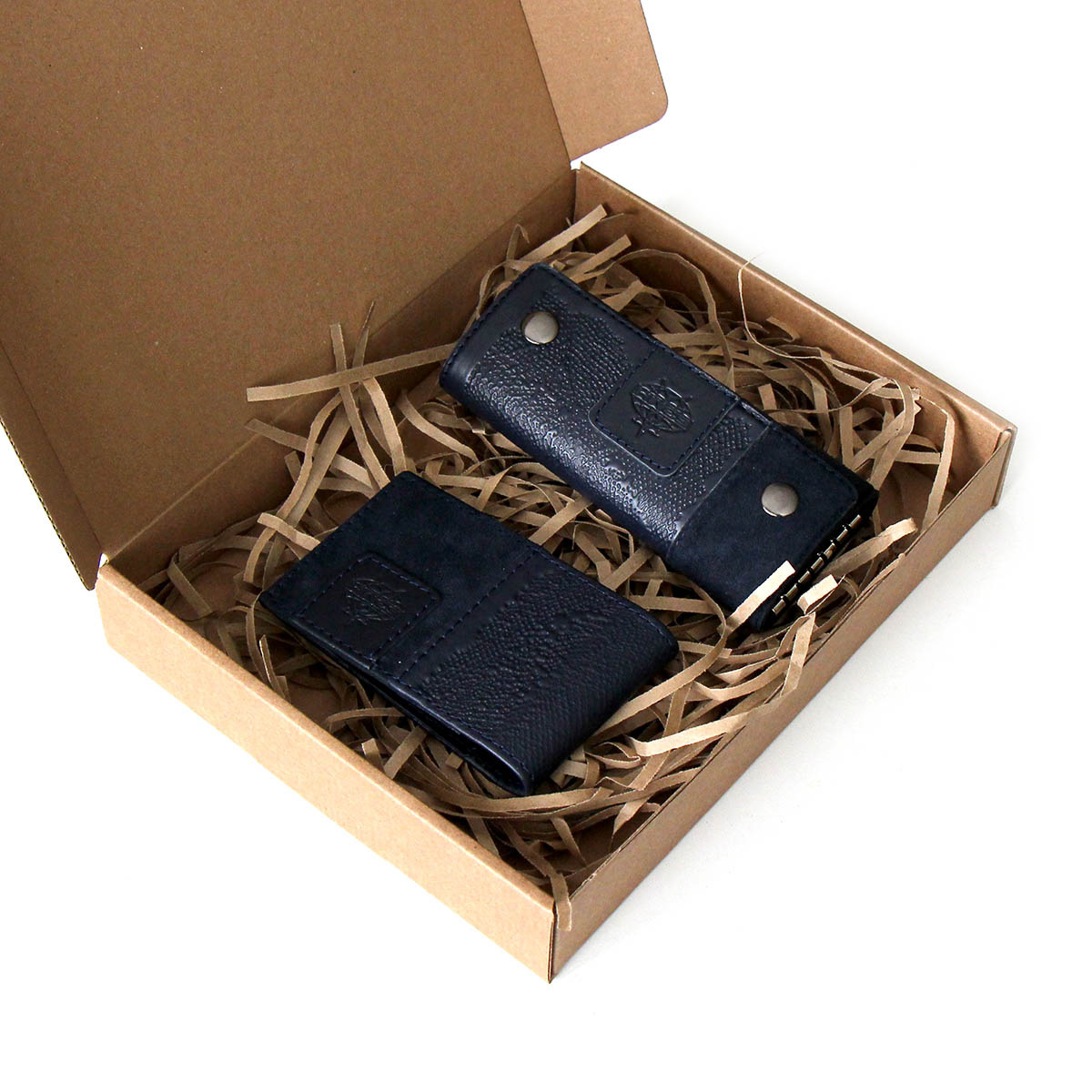 Пример набора подарочного из 2-х предметов с нанесением логотипа. Вы можете укомплектовать набор любыми нашими изделия в любом дизайне, из тех, которые есть у нас на сайте. Мануфактура Гук изготовит для вас любое количество наборов начиная от 5 наборов. Подарочный бокс из картона и итальянской дизайнерской бумаги с ложементом из ткани и кожаной биркой с вашим логотипом будет выполнен по индивидуальному размеру, исходя из расположения и количества наборов в изделии. Стоимость набора складывается из стоимости изделий, которыми он будет комплектоваться+стоимость подарочного бокса.
