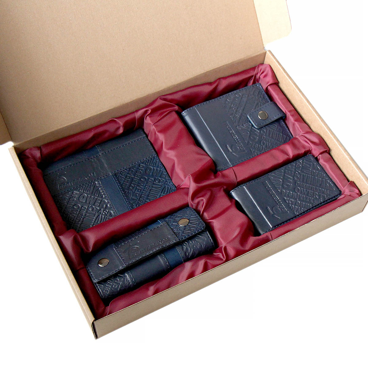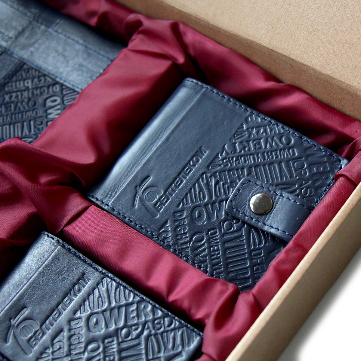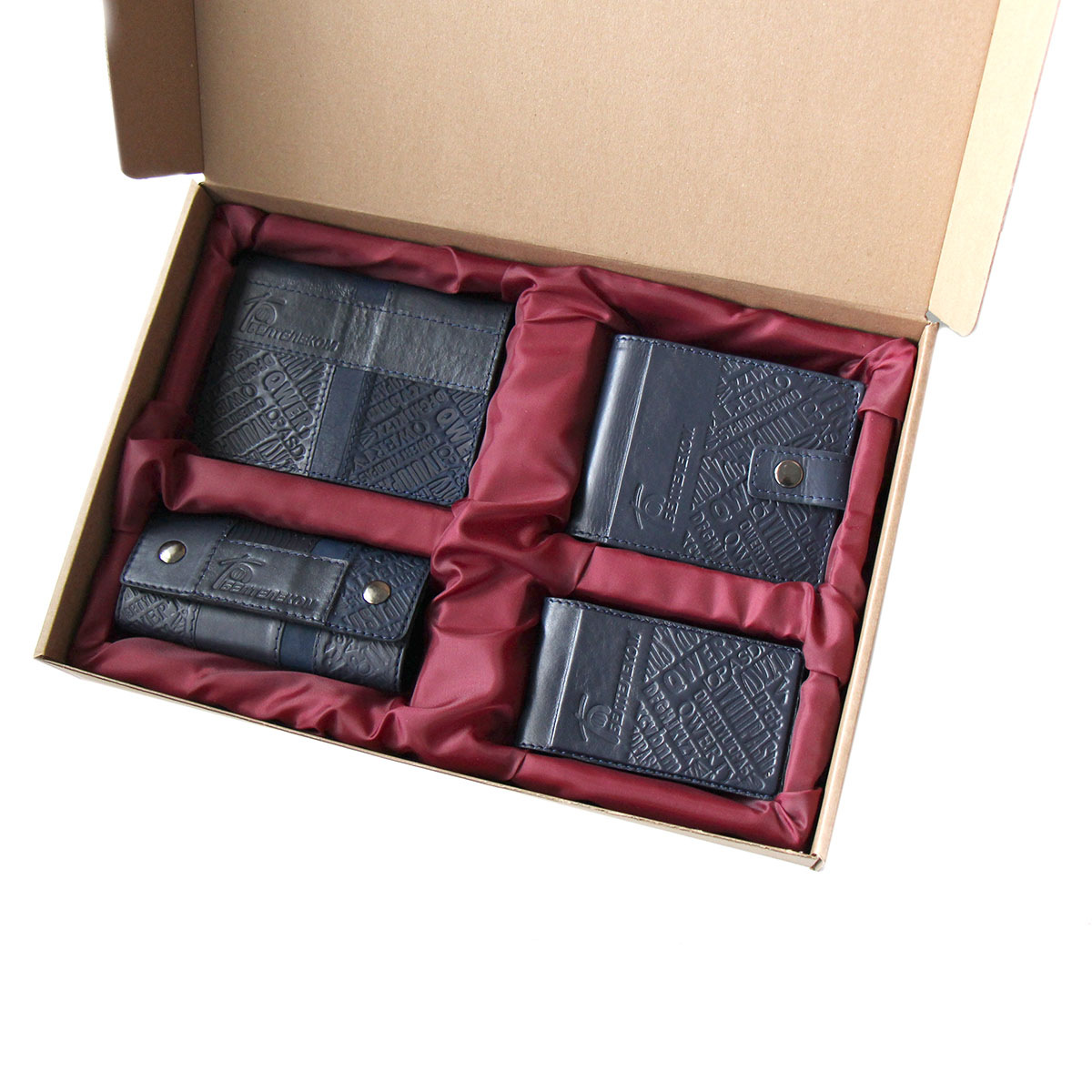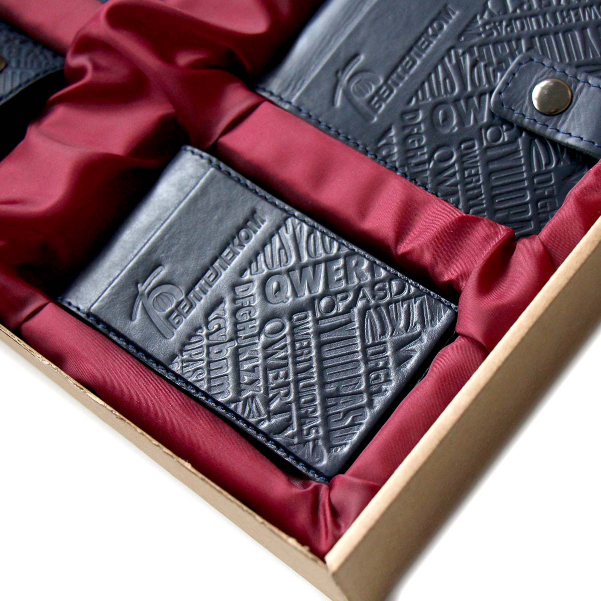 Пример набора подарочного с нанесением логотипа. Вы можете укомплектовать набор любыми нашими изделия в любом дизайне, из тех, которые есть у нас на сайте. Мануфактура Гук изготовит для вас любое количество наборов начиная от 5 наборов. Подарочный бокс из картона с ложементом из ткани и кожаной биркой с вашим логотипом. Размер бокса подбирается, исходя из расположения и количества наборов в изделии. Стоимость набора складывается из стоимости изделий, которыми он будет комплектоваться+стоимость подарочного бокса.