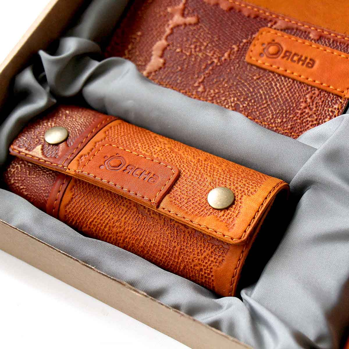 Пример набора подарочного с нанесением логотипа. Вы можете укомплектовать набор любыми нашими изделия в любом дизайне, из тех, которые есть у нас на сайте. Мануфактура Гук изготовит для вас любое количество наборов начиная от 5 наборов. Подарочный бокс из картона с ложементом из ткани и кожаной биркой с вашим логотипом. Размер бокса подбирается, исходя из расположения и количества наборов в изделии. Стоимость набора складывается из стоимости изделий, которыми он будет комплектоваться+стоимость подарочного бокса.
