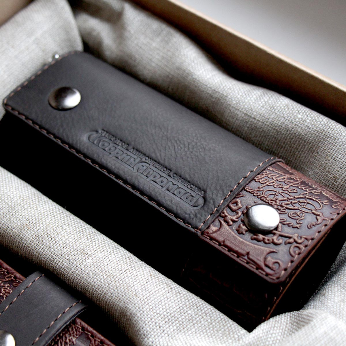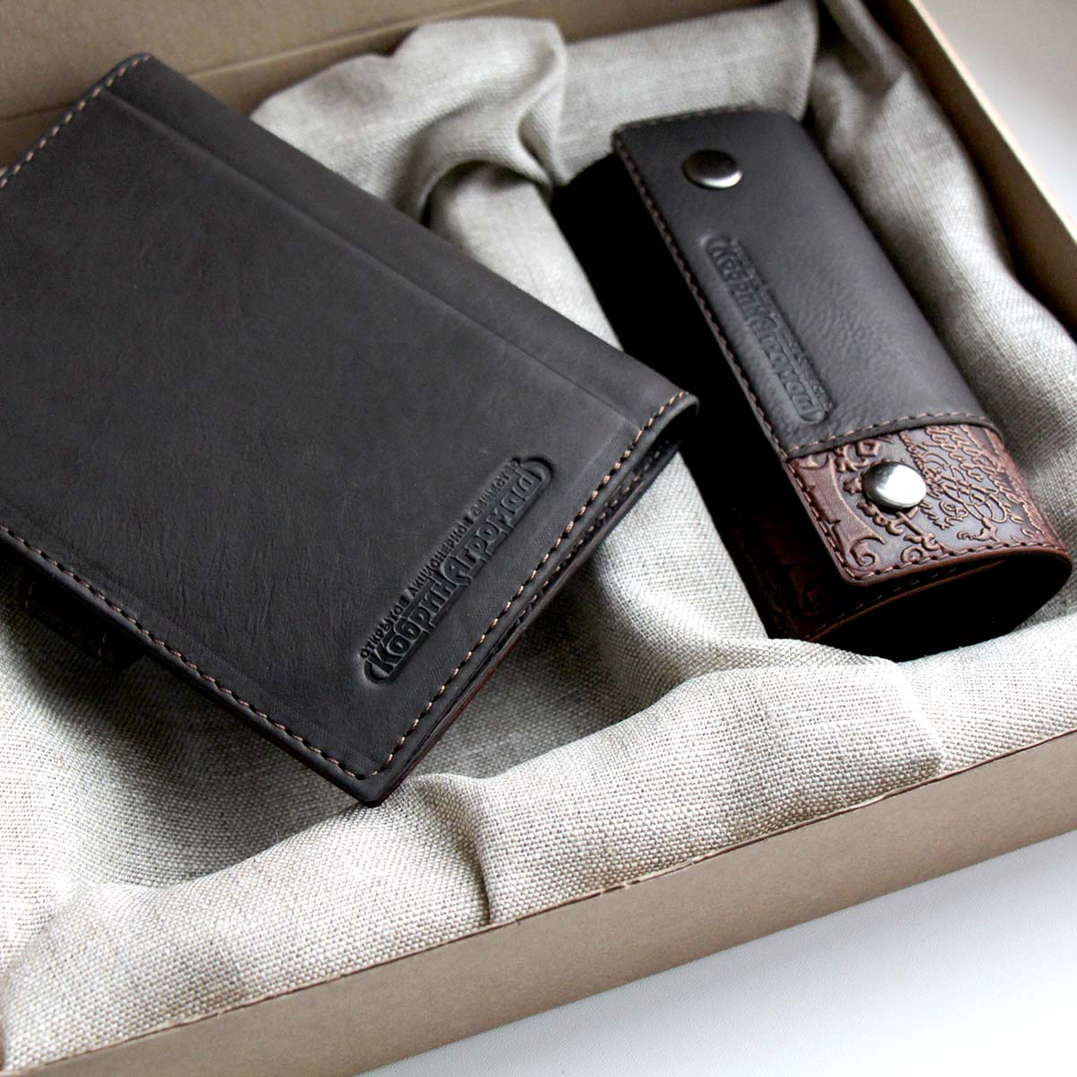 Пример набора подарочного из 2-х предметов с нанесением логотипа. Вы можете укомплектовать набор любыми нашими изделия в любом дизайне, из тех, которые есть у нас на сайте. Мануфактура Гук изготовит для вас любое количество наборов начиная от 5 наборов. Подарочный бокс из картона с ложементом льна и кожаной биркой с вашим логотипомимеет несколько типоразмеров, на 1,2,3,4 изделия. и определяется, исходя из расположения и количества наборов в изделии. Стоимость набора складывается из стоимости изделий, которыми он будет комплектоваться+стоимость подарочного бокса.
