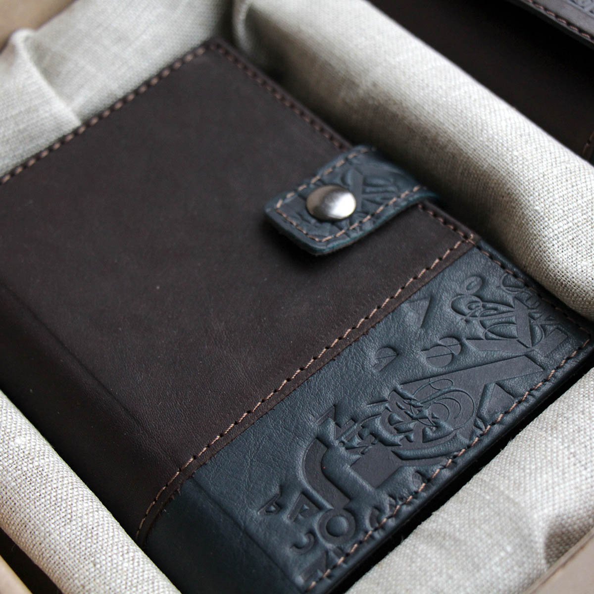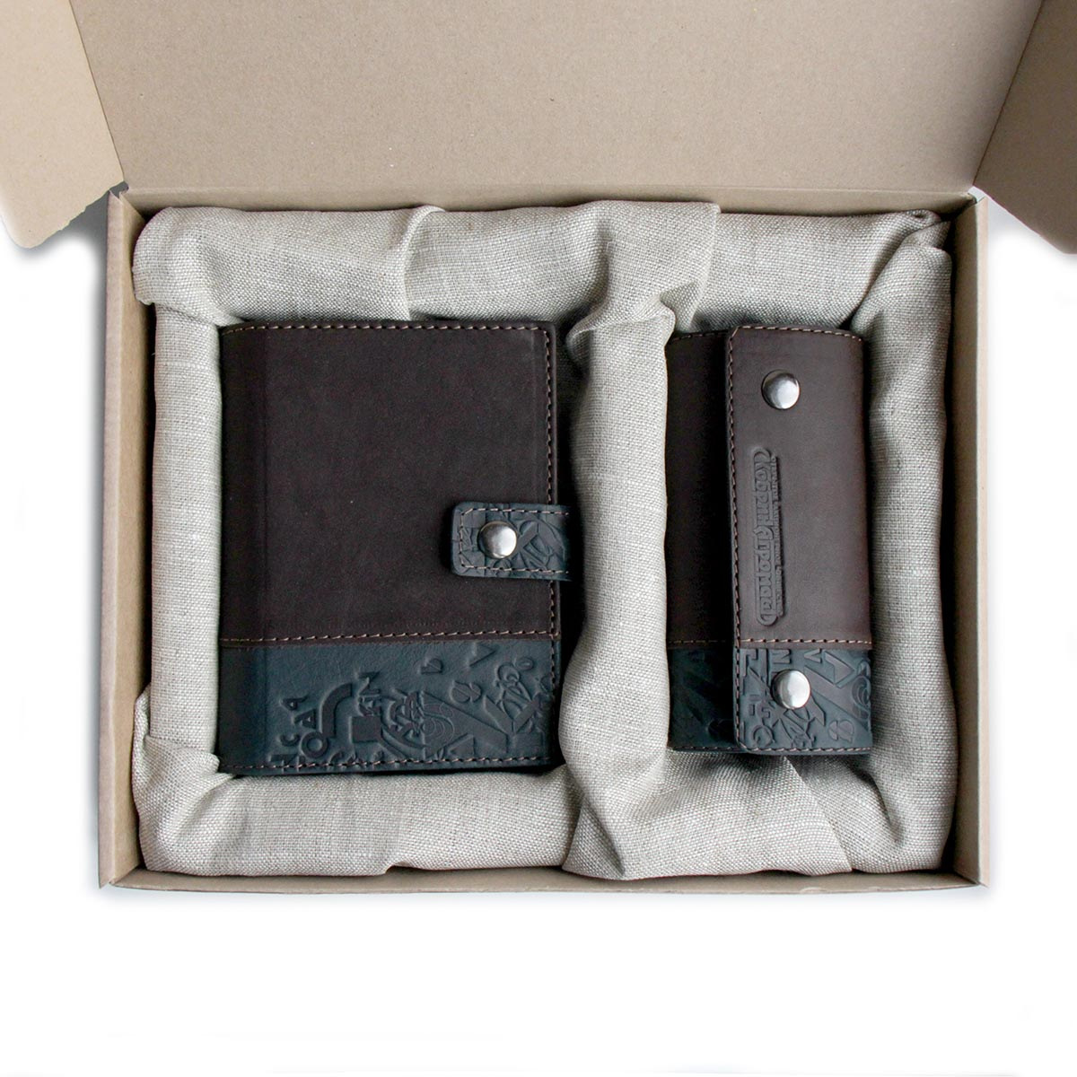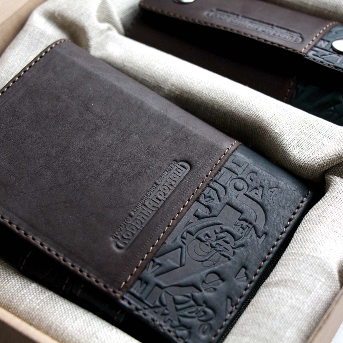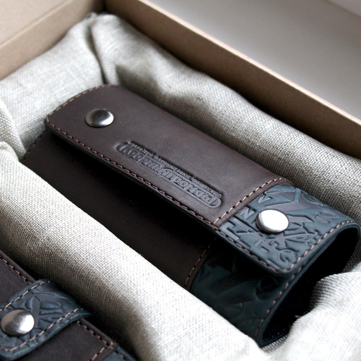 Пример набора подарочного из 2-х предметов с нанесением логотипа. Вы можете укомплектовать набор любыми нашими изделия в любом дизайне, из тех, которые есть у нас на сайте. Мануфактура Гук изготовит для вас любое количество наборов начиная от 5 наборов. Подарочный бокс из картона с ложементом льна и кожаной биркой с вашим логотипомимеет несколько типоразмеров, на 1,2,3,4 изделия. и определяется, исходя из расположения и количества наборов в изделии. Стоимость набора складывается из стоимости изделий, которыми он будет комплектоваться+стоимость подарочного бокса.
