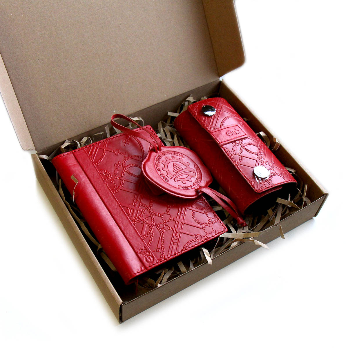 Пример набора подарочного из 2-х предметов с нанесением логотипа. Вы можете укомплектовать набор любыми нашими изделия в любом дизайне, из тех, которые есть у нас на сайте. Мануфактура Гук изготовит для вас любое количество наборов начиная от 5 наборов. Подарочный бокс из картона с ложементом из бумажного наполнителя и кожаной биркой с вашим логотипомимеет несколько типоразмеров, на 1,2,3,4 изделия. и определяется, исходя из расположения и количества наборов в изделии. Стоимость набора складывается из стоимости изделий, которыми он будет комплектоваться+стоимость подарочного бокса.