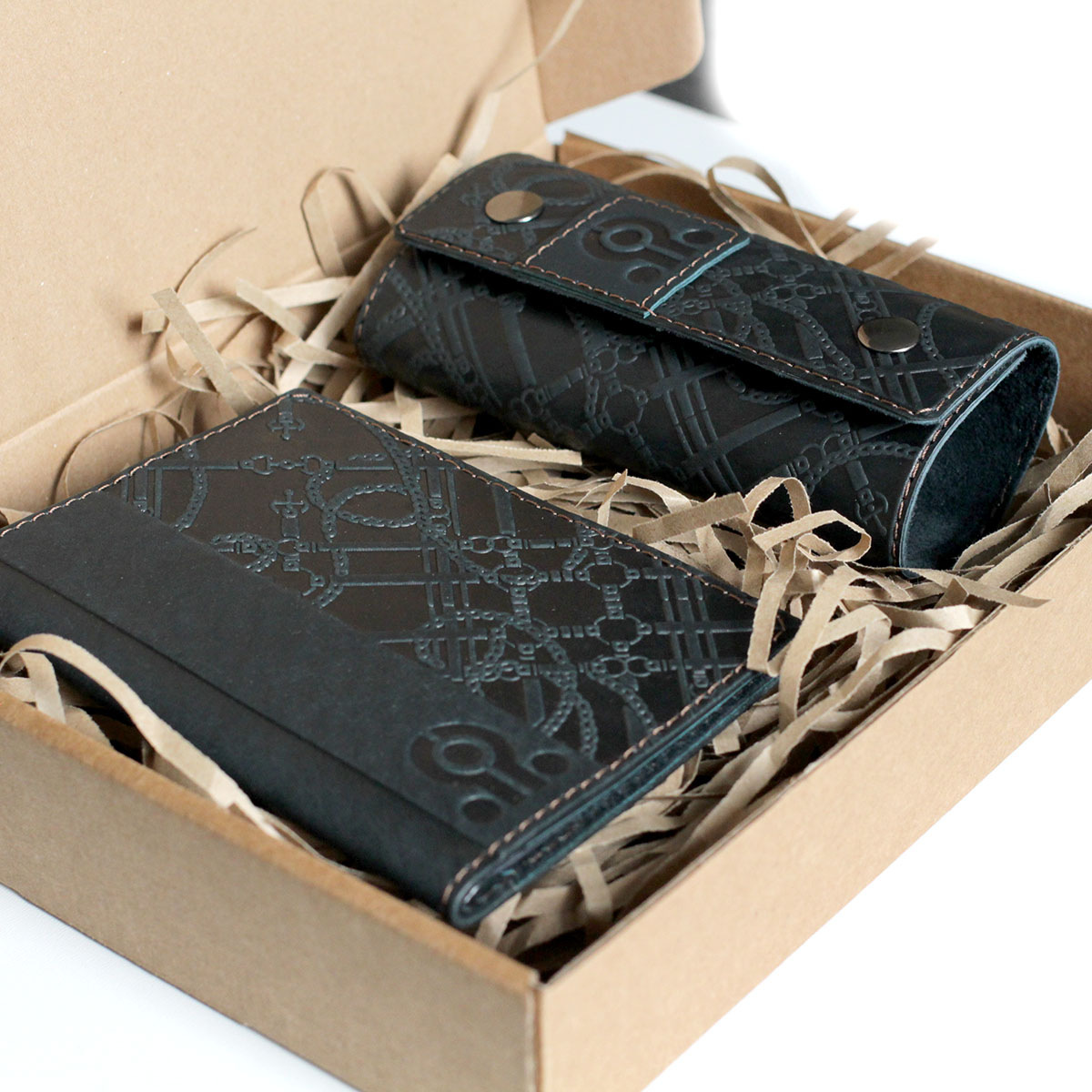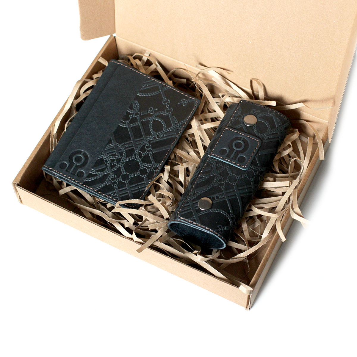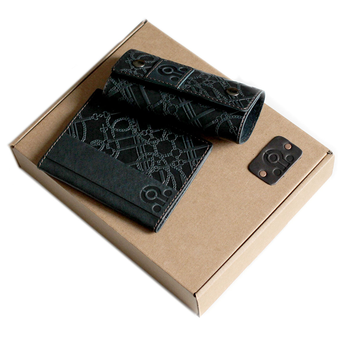 Пример набора подарочного из 2-х предметов с нанесением логотипа. Вы можете укомплектовать набор любыми нашими изделия в любом дизайне, из тех, которые есть у нас на сайте. Мануфактура Гук изготовит для вас любое количество наборов начиная от 5 наборов. Подарочный бокс из картона и итальянской дизайнерской бумаги с ложементом из ткани и кожаной биркой с вашим логотипом будет выполнен по индивидуальному размеру, исходя из расположения и количества наборов в изделии. Стоимость набора складывается из стоимости изделий, которыми он будет комплектоваться+стоимость подарочного бокса.