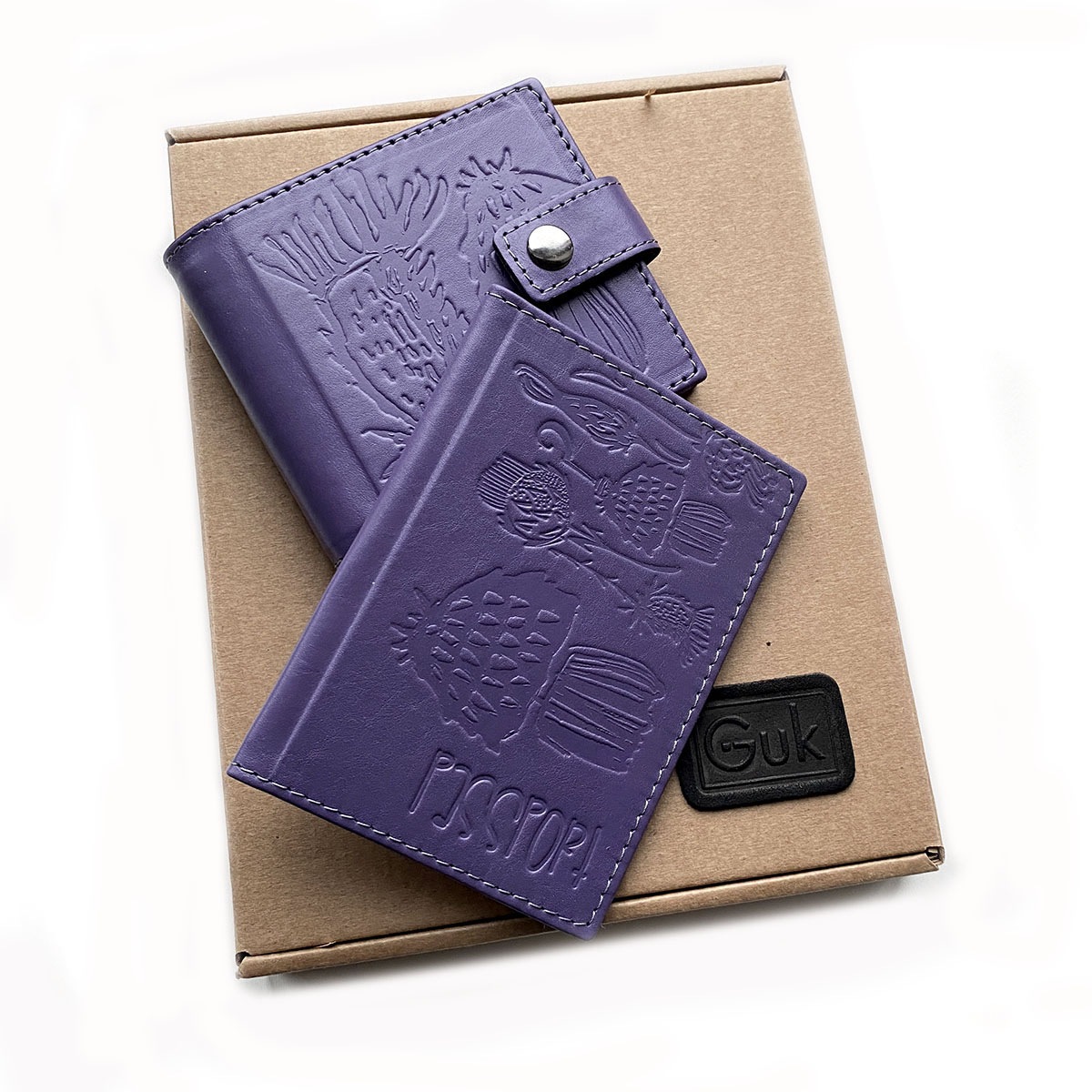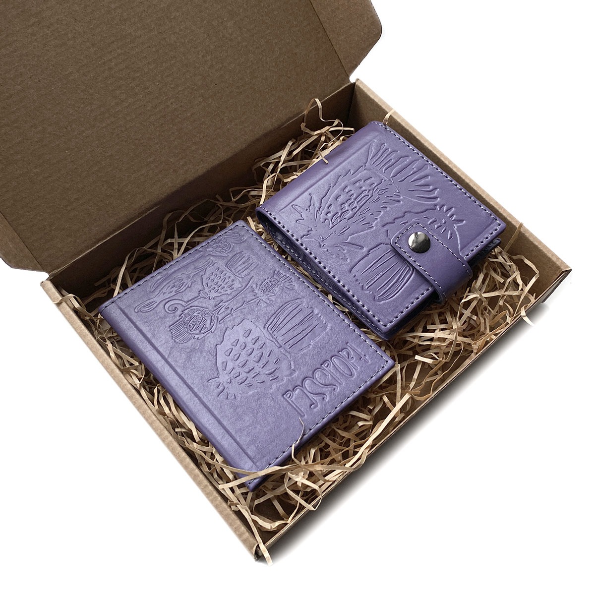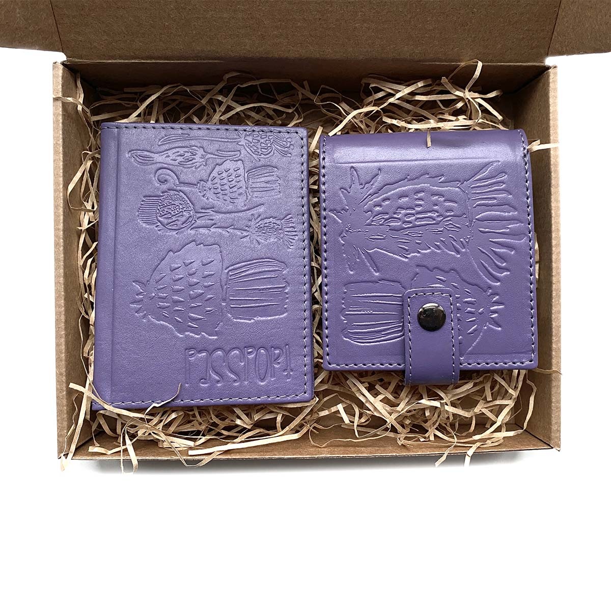Подарочный набор из 2-х кожаных изделий в боксе из крафт-картона. В комплект набора входят: портмоне, обложка для паспорта.