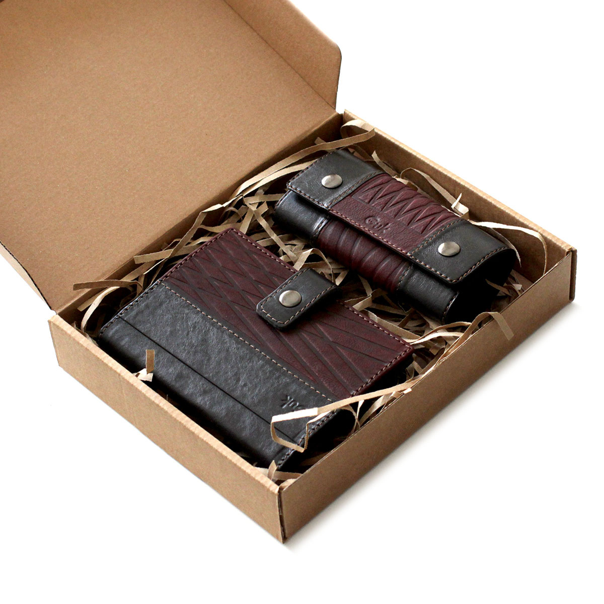 Подарочный набор "DOMUS"" из 2-х кожаных изделий в боксе из крафт-картона с ложементом из бумаги. В комплект набора входят: бумажник водителя Арт. 2905, кожаная ключница Арт. 5310.