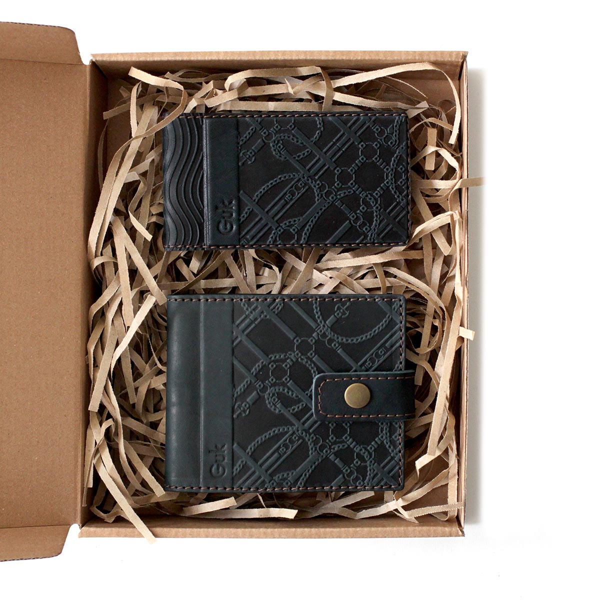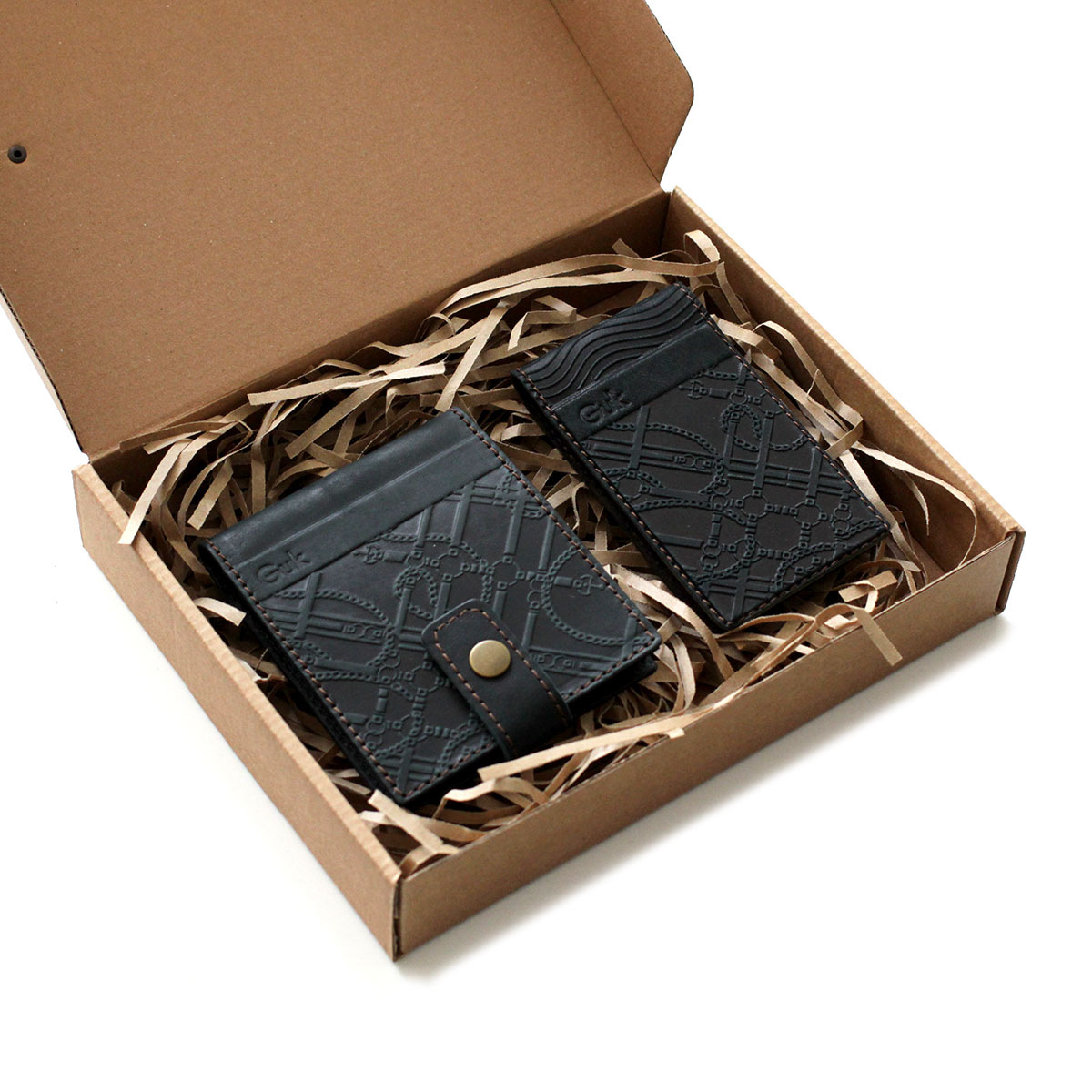 Подарочный набор "GLAMOUR GREEN" из 2-х кожаных изделий в боксе из крафт-картона с ложементом из бумаги. В комплект набора входят: портмоне Арт. 8201, кредитница Арт. 4513.