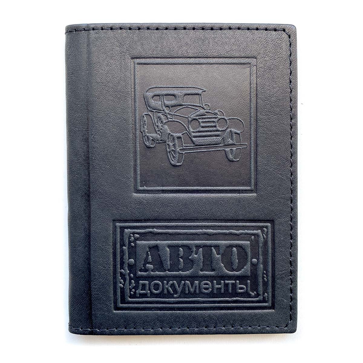 Кожаная обложка для автодокументов "RETRO-CAR-1" кожаная с вкладышем. Имеет 5 отделений, также большое отделение для страховки. Оригинальное тиснение.