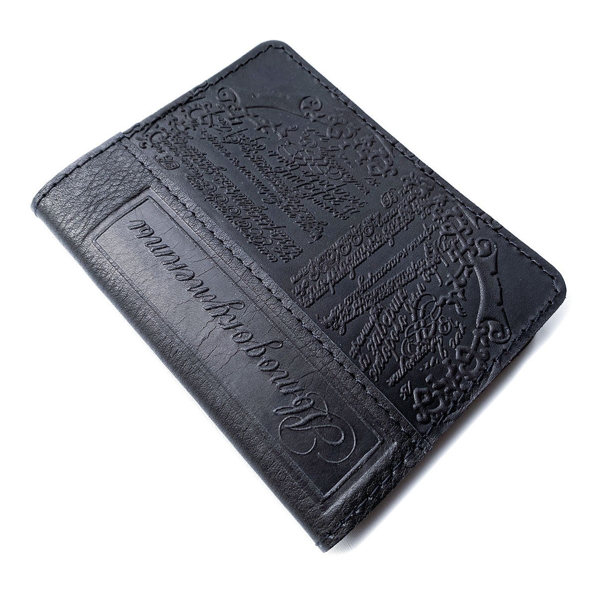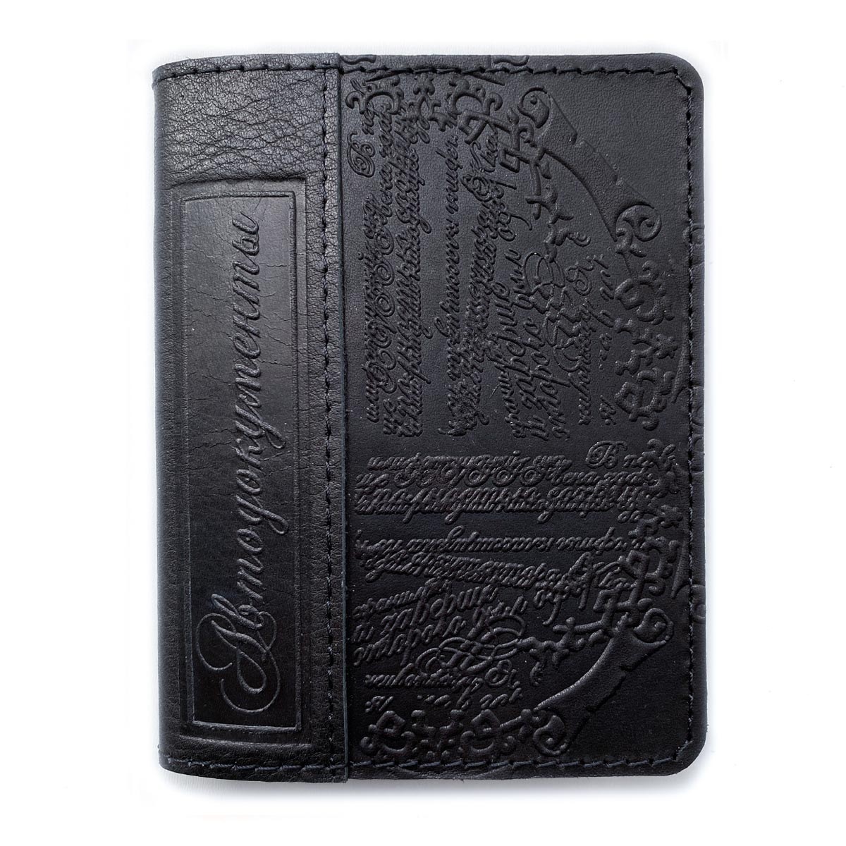Кожаная обложка для автодокументов "NOTE BLACK" кожаная с вкладышем. Имеет 5 отделений, также большое отделение для страховки. Оригинальное тиснение. Обложка не имеет картонного каркаса, мягкая, легко гнется и принимает форму кармана.