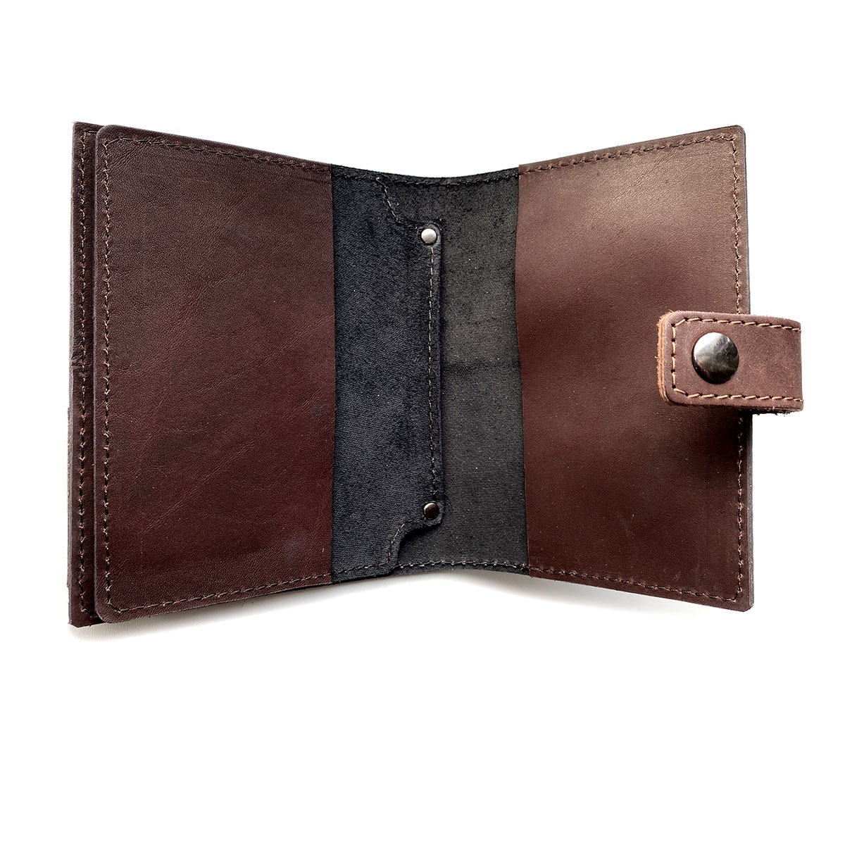 Кожаная обложка для документов универсальная. Отделения для паспорта, автодокументов. Не имеет картонного каркаса, держит форму за счет жесткости кожи.