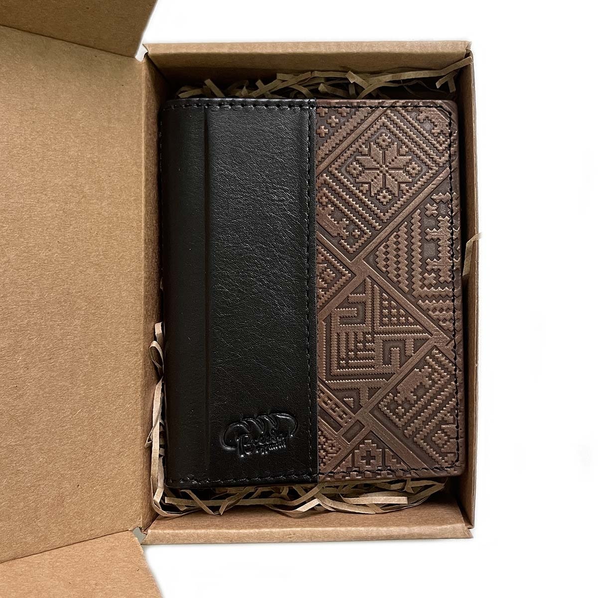 Обложка кожаная с логотипом. Упаковка- короб из крафт-картона с кожаной биркой. Данные изделия изготавливаем тиражом от 10 штук под заказ, возможно изготовление с вашим логотипом.